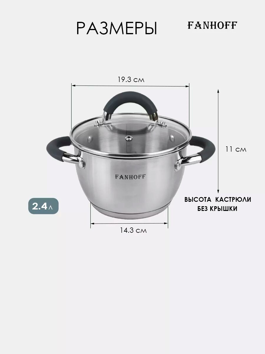 Кастрюля FANHOFF 2,4 л, нержавеющая сталь, стеклянная крышка, для всех видов плит: сравнение цен, характеристики, фото, актуальное наличие и цены.