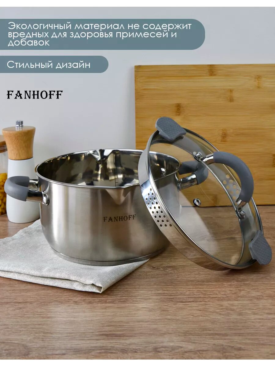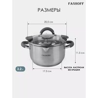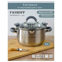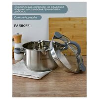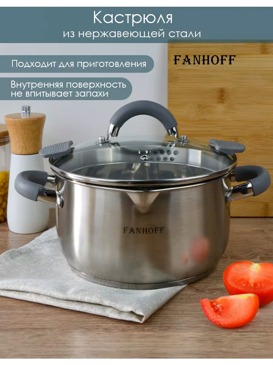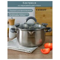 Купить Кастрюля FANHOFF 3,2 л, нержавеющая сталь, стеклянная крышка, для всех видов плит с доставкой по всей России.