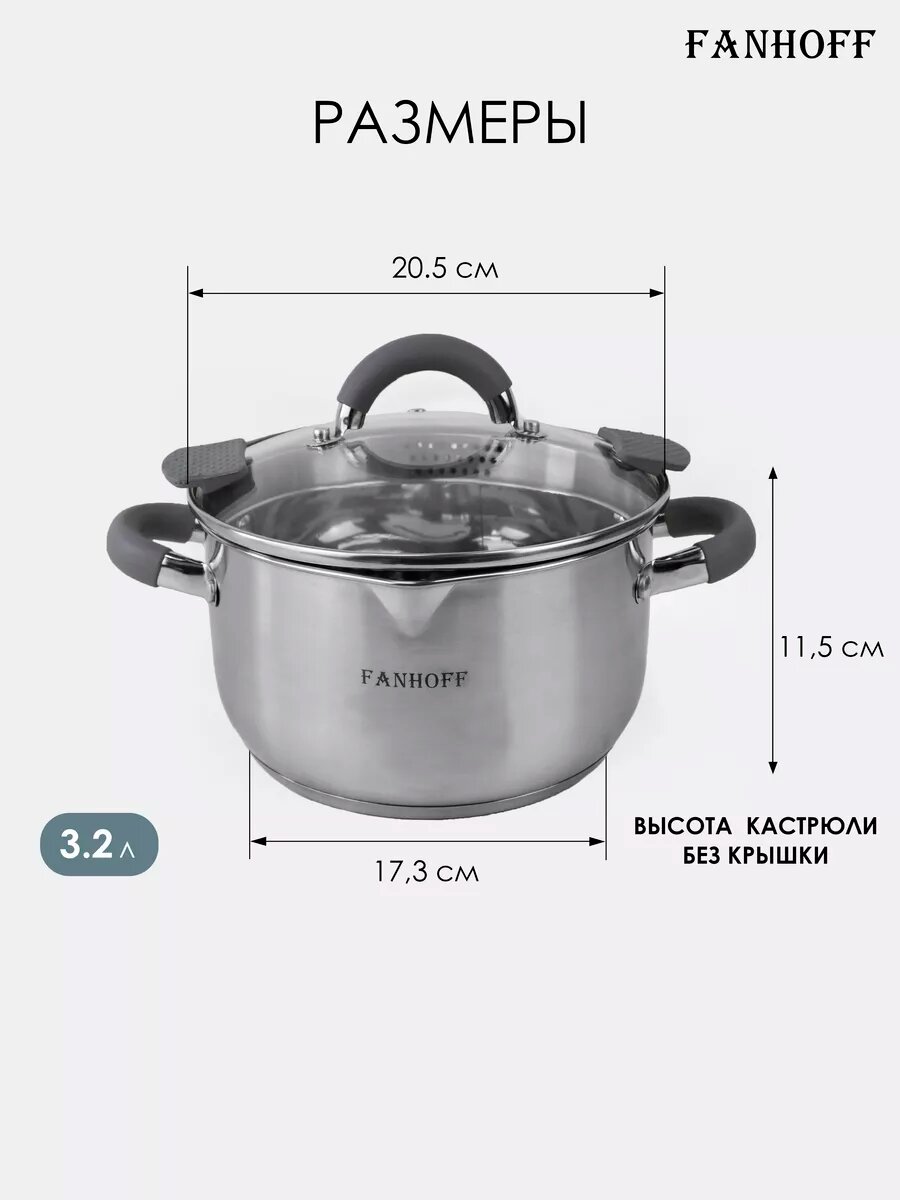 Кастрюля FANHOFF 3,2 л, нержавеющая сталь, стеклянная крышка, для всех видов плит: сравнение цен, характеристики, фото, актуальное наличие и цены.
