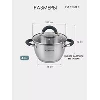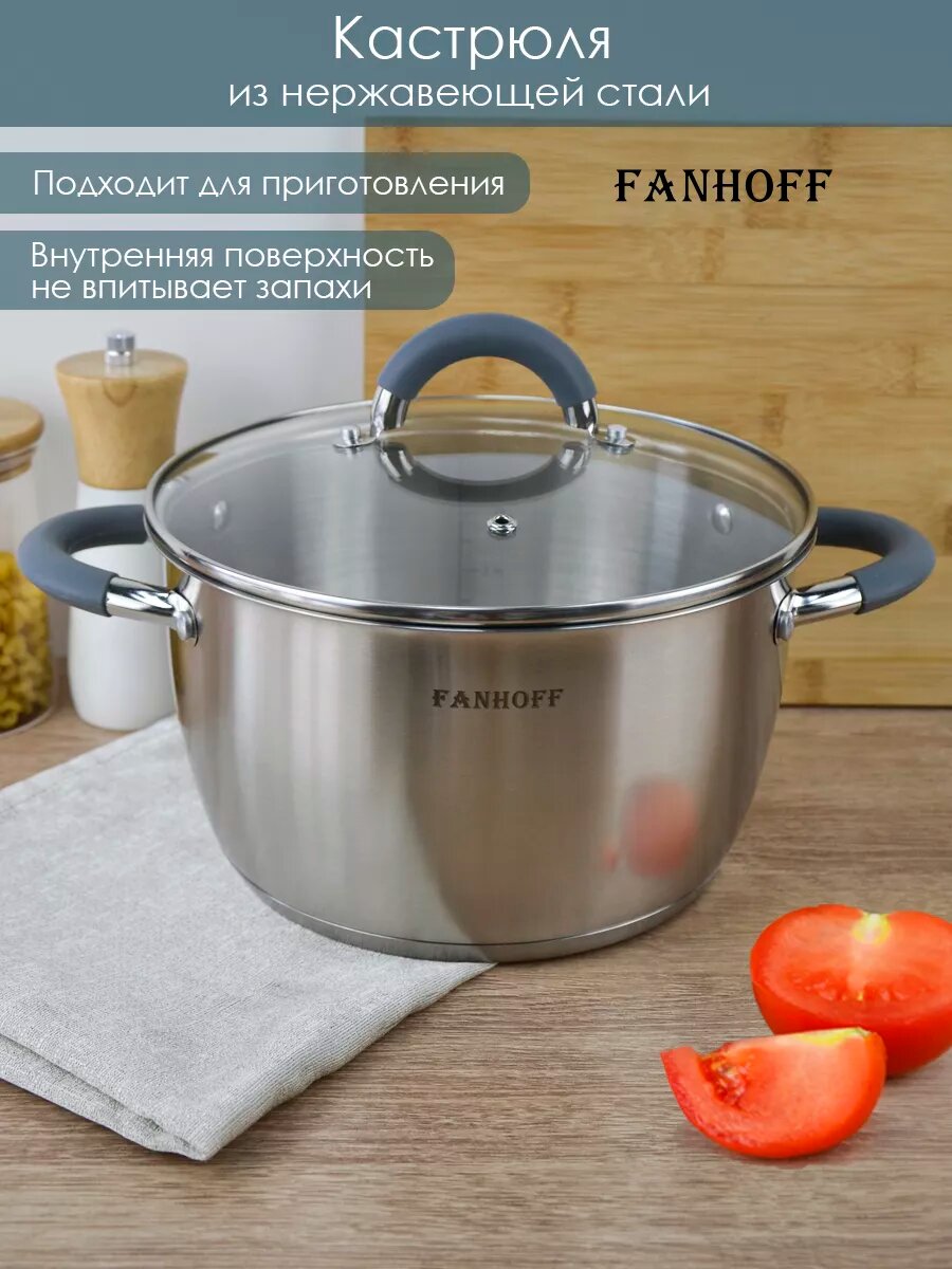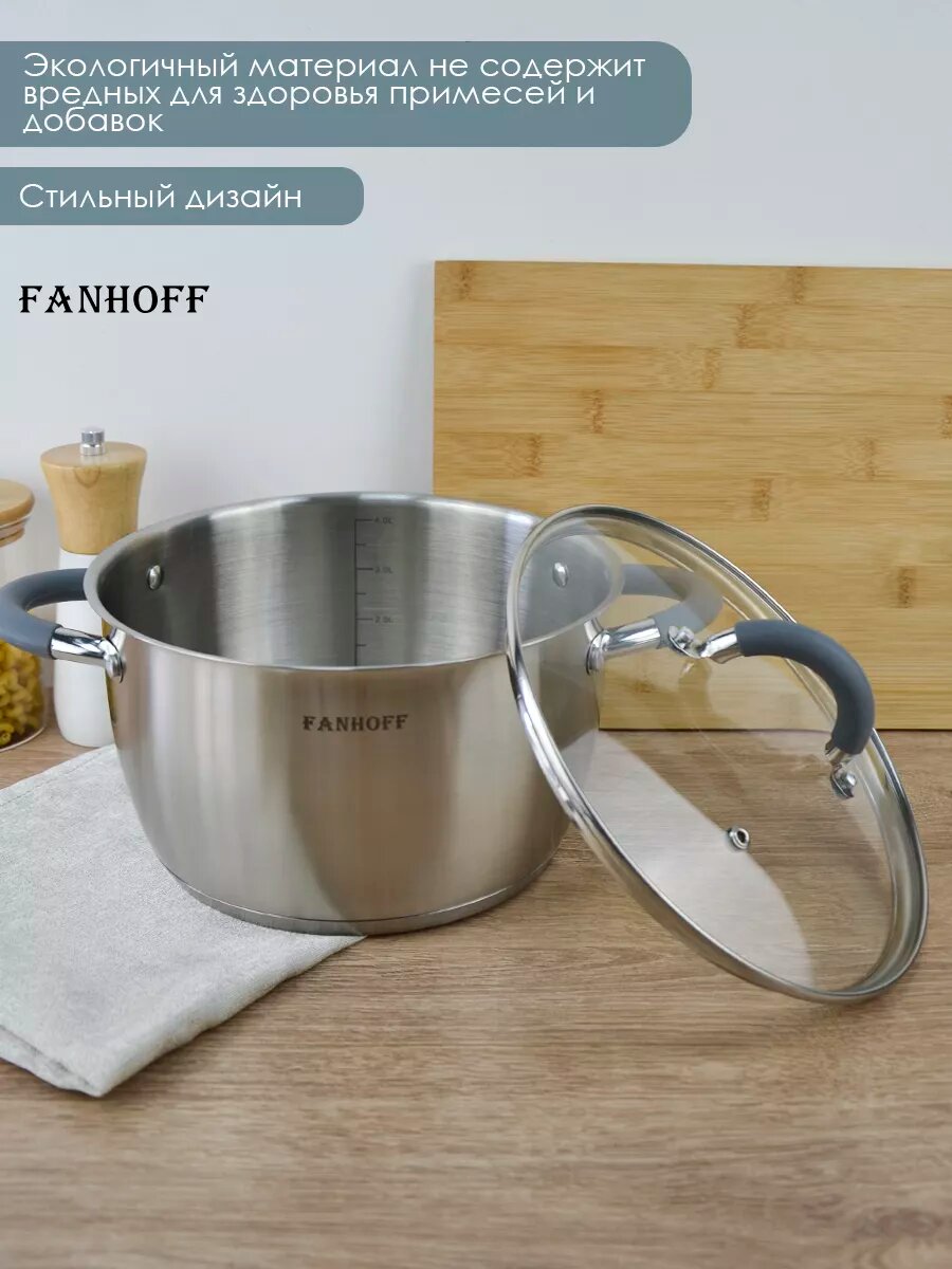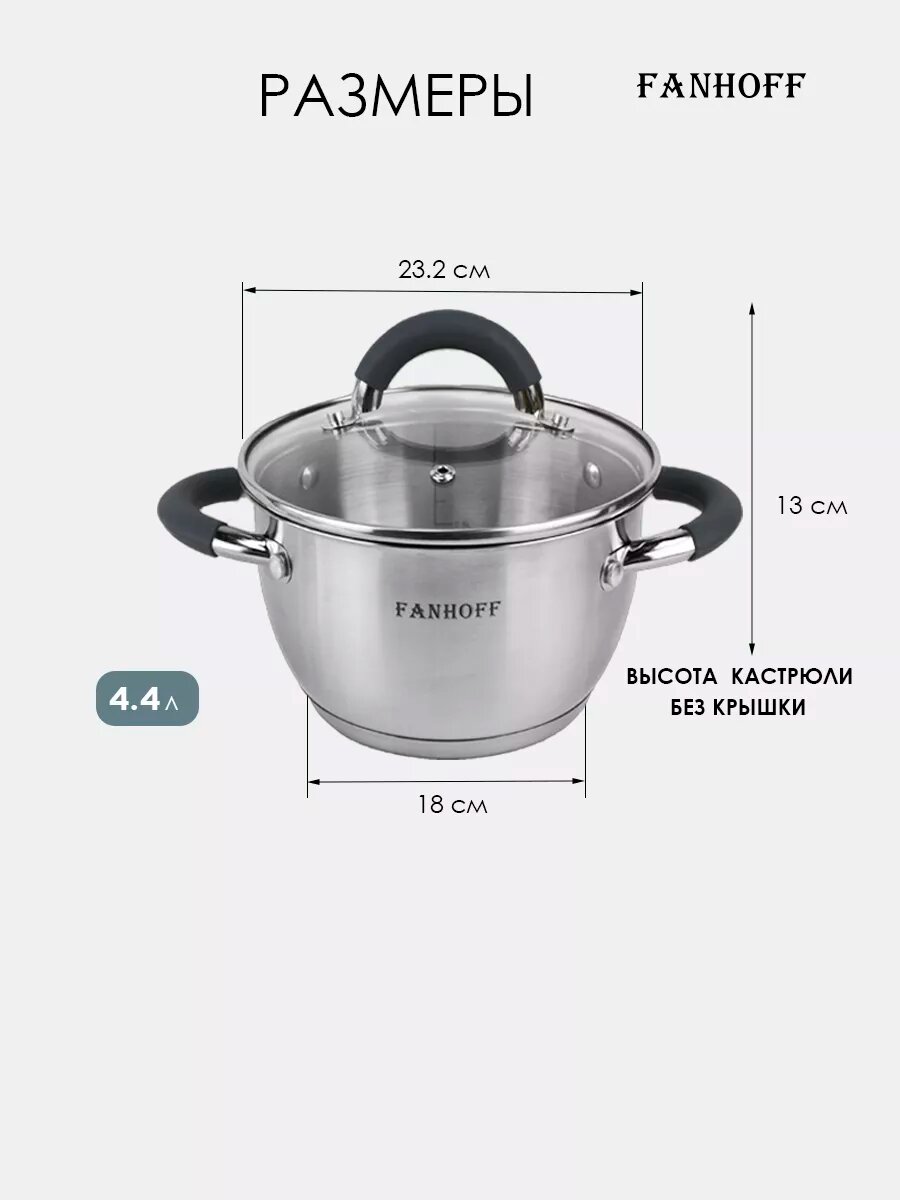 Кастрюля FANHOFF 4,4 л, нержавеющая сталь, стеклянная крышка, для всех видов плит: сравнение цен, характеристики, фото, актуальное наличие и цены.