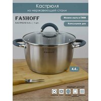 Купить Кастрюля FANHOFF 4,4 л, нержавеющая сталь, стеклянная крышка, для всех видов плит с доставкой по всей России.