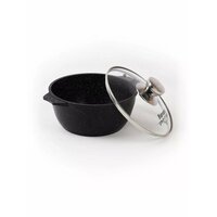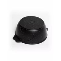 Кастрюля Гранит black имеет объем, оптимальный для приготовления первых и вторых блюд как для одного, так и нескольких пользователей. Изделие удобно применять на внешнем источнике нагрева или в духовом шкафу для запекания различных продуктов. Мясо, картофель, курица, рыба и другие ингредиенты в процессе термической обработки не пригорают даже при использовании минимального количества масла. Этому способствует специальное внутреннее покрытие. Модель поставляется с крышкой, при изготовлении которой использовано жаростойкое стекло. Благодаря этому пользователь может с комфортом следить за текущим циклом приготовления продуктов. Не подходит для индукционных плит. Диаметр - 240мм. Диаметр дна - 176мм. Высота - 125мм. Толщина дна - 6мм. Толщина стенки - 4мм.