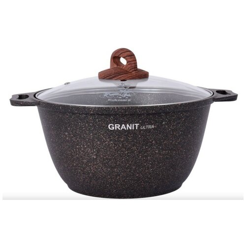 Кастрюля Kukmara изготовлена из литого алюминия и покрыта ультрапрочным антипригарным покрытием Ultra granit. Оно усилено сверхтвёрдыми минералами, близкими по твёрдости алмазу, и продлевает срок службы посуды более чем в 7 раз. Покрытие позволяет использовать при готовке даже металлические кухонные принадлежности.