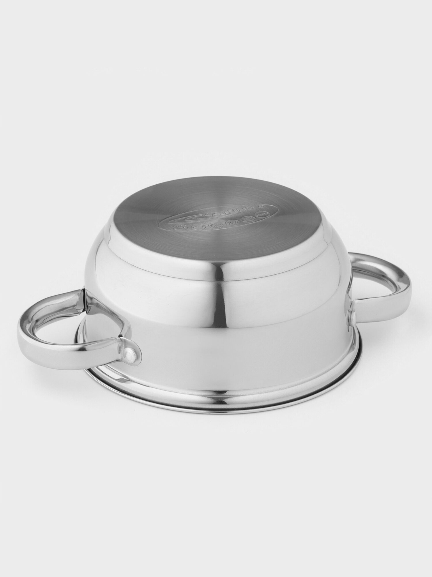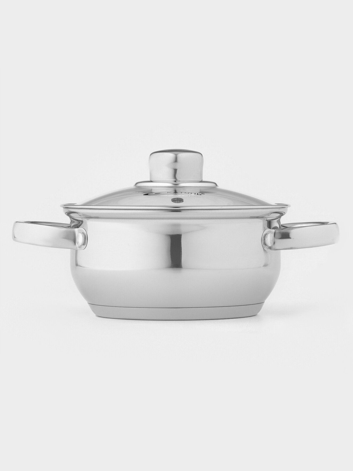 Нержавеющая посуда имеет "постоянную прописку" без преувеличения в каждом доме. Невероятно износостойкие, безупречно гигиеничные, привлекательные внешне модели из коррозиестойкого металла давно завоевали сердца заботливых хозяек. Изделие выполнено из стали, прошедшей зеркальную полировку. Толщина стенок составляет 0,4 мм. Крышка G-типа оснащена удобной пароотводной системой. Ручки прикреплены по технологии клепочной фиксации. Высота 10 см. Ширина (с ручками) 24 см. Диаметр дна 12,5 см. Диаметр по краю 17,5 см. Важно отметить, что посуда серии "Гретта" имеет капсулированное дно, то есть в изделие вплавлена алюминиевая пластина. Такое строение позволяет модели быстрее нагреваться и лучше распределять тепло. Функциональная и презентабельная кастрюля или набор посуды торговой марки "Катунь" станут отличным подарком представительницам слабого пола к 8 Марта или любому другому празднику.