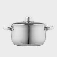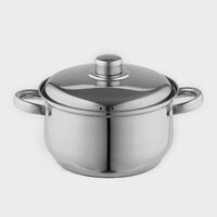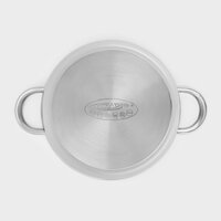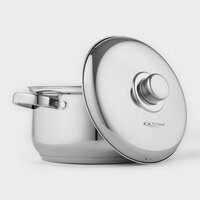 Изделие выполнено из стали, прошедшей зеркальную полировку. Толщина стенок составляет 0,4 мм. Крышка G-типа оснащена удобной пароотводной системой. Ручки прикреплены по технологии клепочной фиксации.
