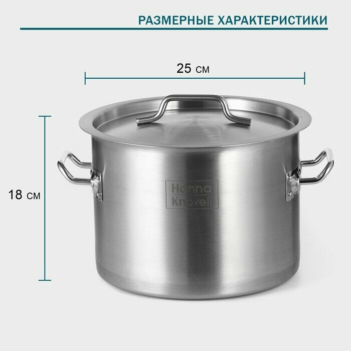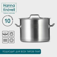 Кастрюля Hanna Knövell с крышкой, 10 л, d=25 см, h=18 см, толщина стенки 0.8 мм, дно ТРС, толщина дна 4.4 мм, 201 сталь, индукция, нержавеющая сталь