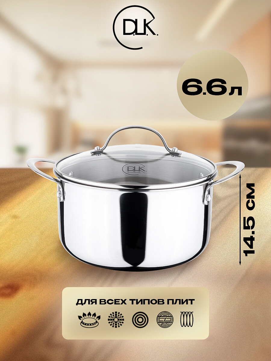 Кастрюля из нержавеющей стали с крышкой 26 см 6.6 л для всех видов плит DLK: сравнение цен, характеристики, фото, актуальное наличие и цены.