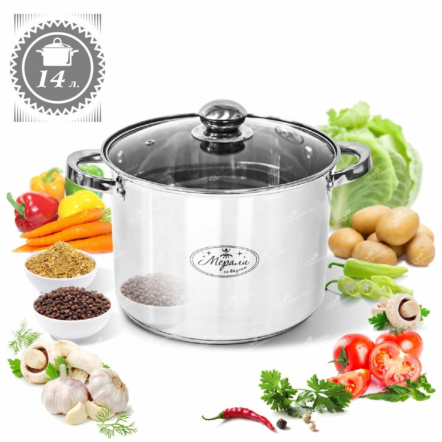 Кастрюля из нержавеющей стали с крышкой Мерали 14 л для газовых электрических и индукционных плит: сравнение цен, характеристики, фото, актуальное наличие и цены.