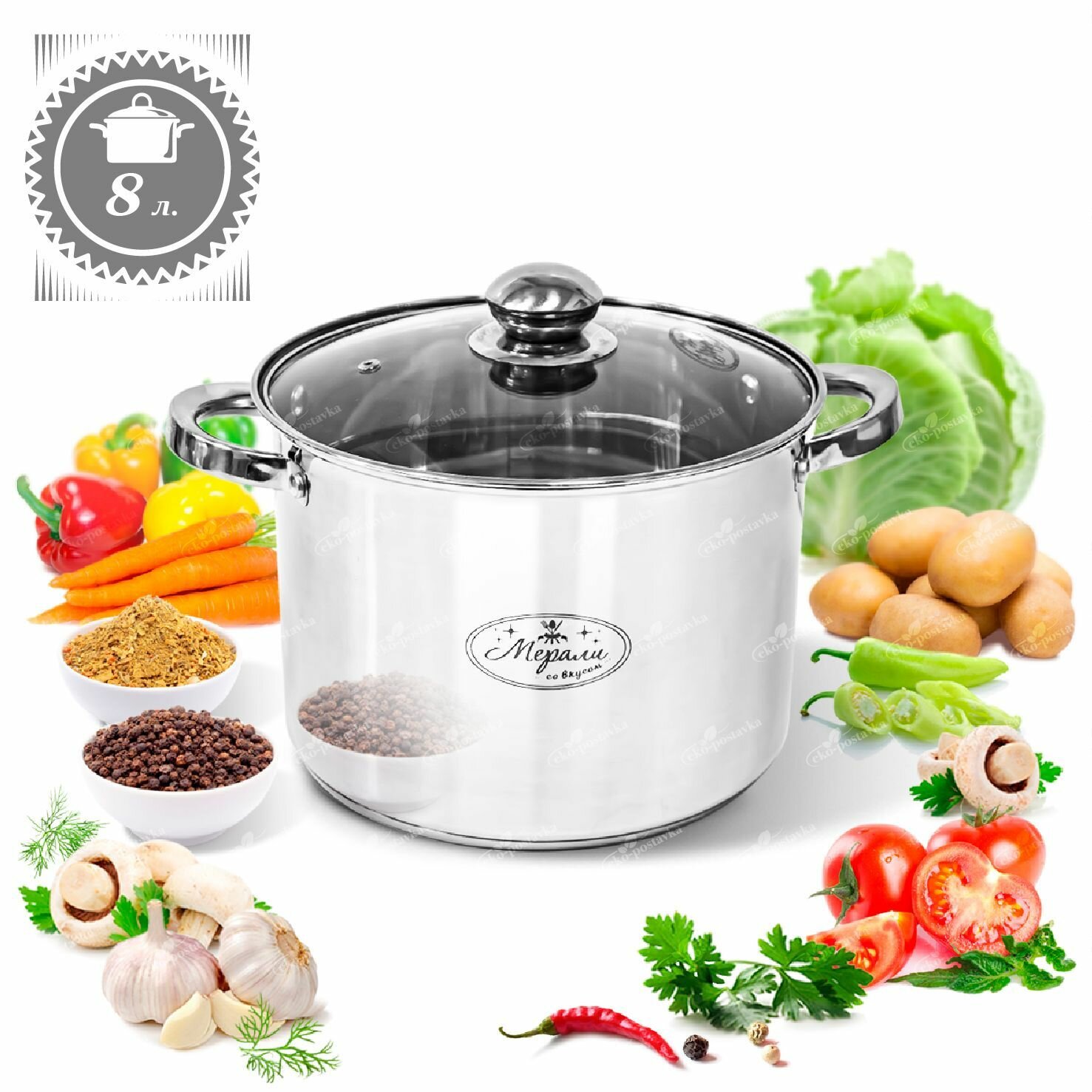 Кастрюля из нержавеющей стали с крышкой Мерали 8 л для газовых электрических и индукционных плит: сравнение цен, характеристики, фото, актуальное наличие и цены.