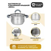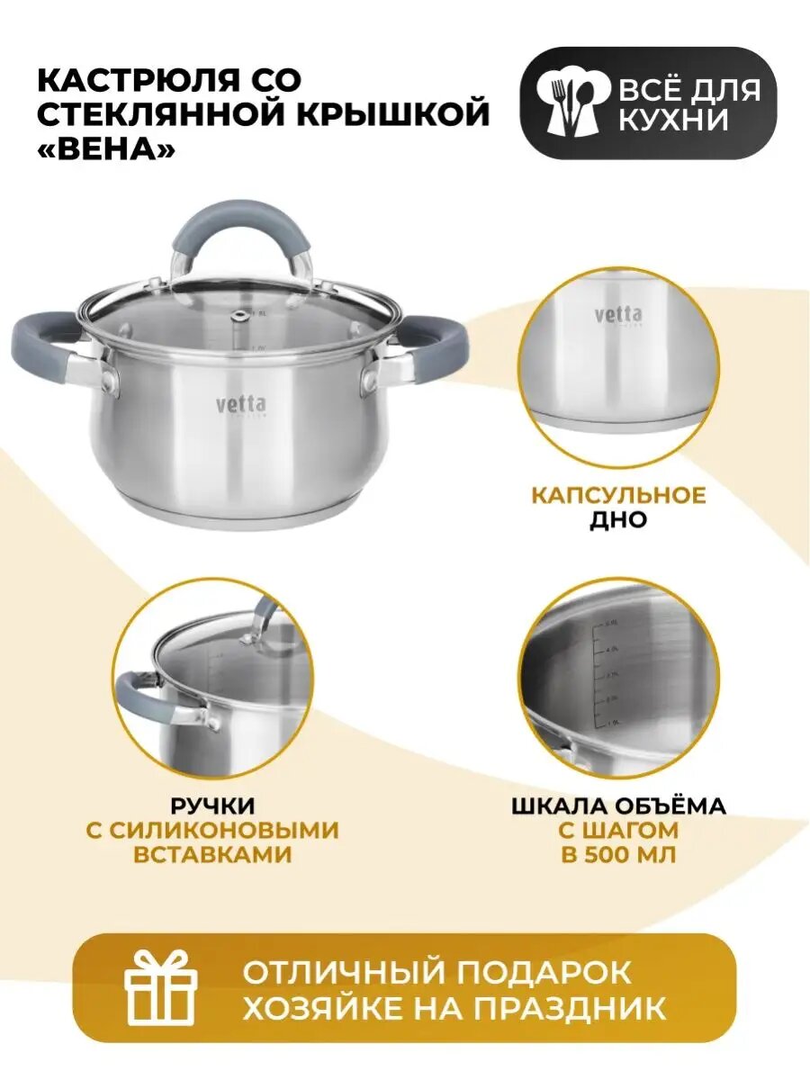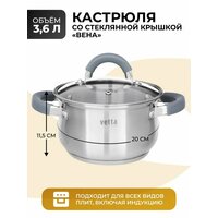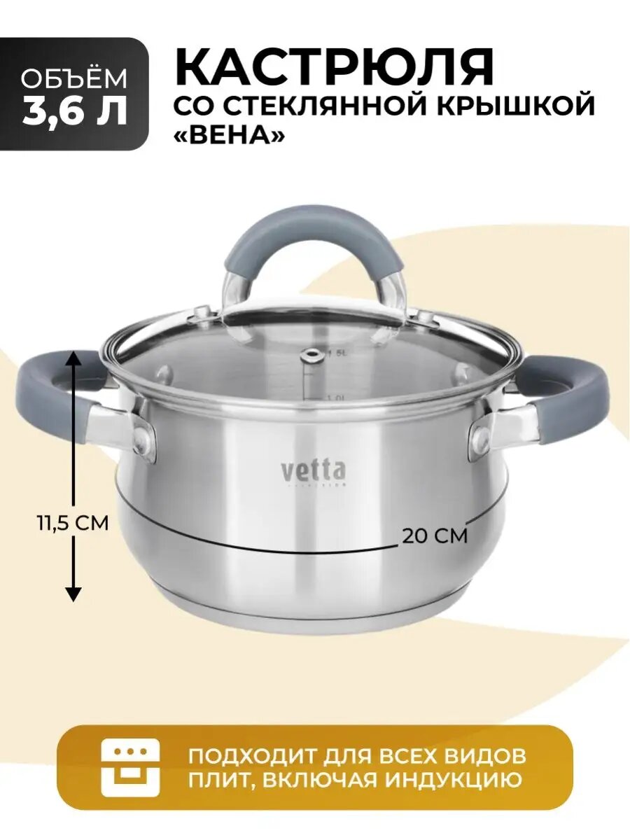Кастрюля из нержавеющей стали со стеклянной крышкой 3,6 л, для индукции: сравнение цен, характеристики, фото, актуальное наличие и цены.