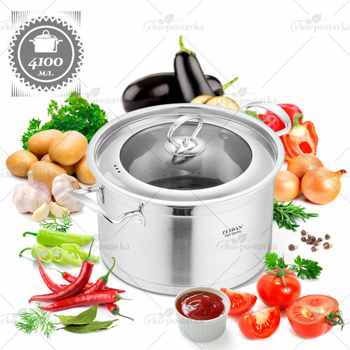 Набор кастрюль для индукционной плиты невероятно удобны в использовании, за ними легко и просто ухаживать. Ненагревающиеся ручки позволяют сливать жидкость без использования прихваток, а стеклянная прозрачная крышка поможет вам наблюдать за процессом приготовления. Кастрюля 4,1 литра с толстым дном надолго сохранит тепло ваших блюд. Набор наших кастрюль подходят для варки и тушения. Стеклянная посуда очень удобна для приготовления первых и вторых блюд, а так же для сезонных заготовок. Идеально подойдет вам как походная посуда. Соберите себе набор посуды из нержавеющей стали из нашего ассортимента серии Silver. Кастрюлька 4,1 литра с крышкой идет в подарочной коробке, поэтому будет отличным подарком для Вас и ваших близких по любому поводу и на любой праздник! Посуда набор Zeidan и станет самым лучшим подарком и помощником на вашей кухне.