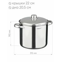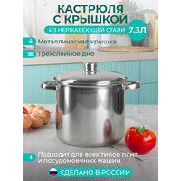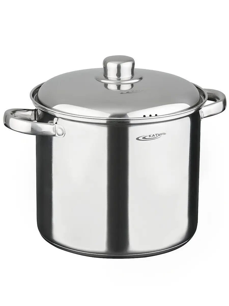 Кастрюля серии Гретта КТ04-D-72 объёмом 7,3 л , диаметр 22 см выполнена из многослойному дну происходит равномерное распределение температуры по всей поверхности, что обеспечивает быстрое приготовление. Крышка выполнена из металла, оснащена ручкой и отверстиями для выпуска пара. Ручки прикреплены к кастрюле с помощью заклепок. Наружная полировка кастрюли - зеркальная. Подходит для всех видов плит, кроме индукционных. Допустимо мытье кастрюли в посудомоечной машине. Товар изготовлен в России. Бытовая посуда из нержавеющей стали славится неприхотливостью в уходе и безукоризненной функциональностью. Коррозиестойкий сплав обеспечивает гигиеничность изделий. Чем привлекательна посуда из нержавейки? Кастрюля «Катунь» станет удачной находкой для каждой хозяйки: благодаря низкой теплопроводности модели приготовленное блюдо дольше остается горячим; зеркальная полировка придаёт посуде благородный облик; металлическая крышка оснащена пароотводом; толщина стенок и дна – 0,6 мм. Как продлить срок службы? Ухаживать за посудой просто, но стоит помнить о нескольких простых правилах : Во-первых, не следует применять абразивные инструменты и сильно хлорированные моющие средства. Во-вторых, не оставляйте пустую посуду на плите. В-третьих, во избежание белых пятен солите воду после закипания. Если на поверхности изделия все же появились пятна, используйте для их удаления несколько капель уксусной или лимонной кислоты. Дополнительно: Посуда рекомендована для домашнего использования. Характеристики: Общие: Торговая марка: Катунь Сертификат: РСТ Страна производитель: Россия Состав: Нержавеющая сталь Серия: Катунь “Гретта” Упаковка и фасовка: В боксе: 2 штуки Фасовка: по 1 штуке Индивидуальная упаковка: Пакет Размер упаковки (Длина х Ширина х Высота): 31,5 см х 23,5 см х 19,5 см Габариты и вес: Размер (Длина х Ширина х Высота): 20 см х 32 см х 23,5 см Вес брутто: 1.3 кг Особенности: Диаметр, см: 22 Цвет: Хромированный Объём, л: 7.3 Рисунок: Нет Крышка: Да Материал крышки: Нержавеющая сталь Материал: Нержавеющая сталь Съёмная ручка: Нет Тип покрытия: Без покрытия Тип плиты: Для газовой плиты, Для галогенной плиты, Для стеклокерамической плиты, Для электрической плиты Капсульное дно: Да Можно мыть в посудомоечной машине: Да Кастрюля 7,3л "Гретта" нжс, Катунь