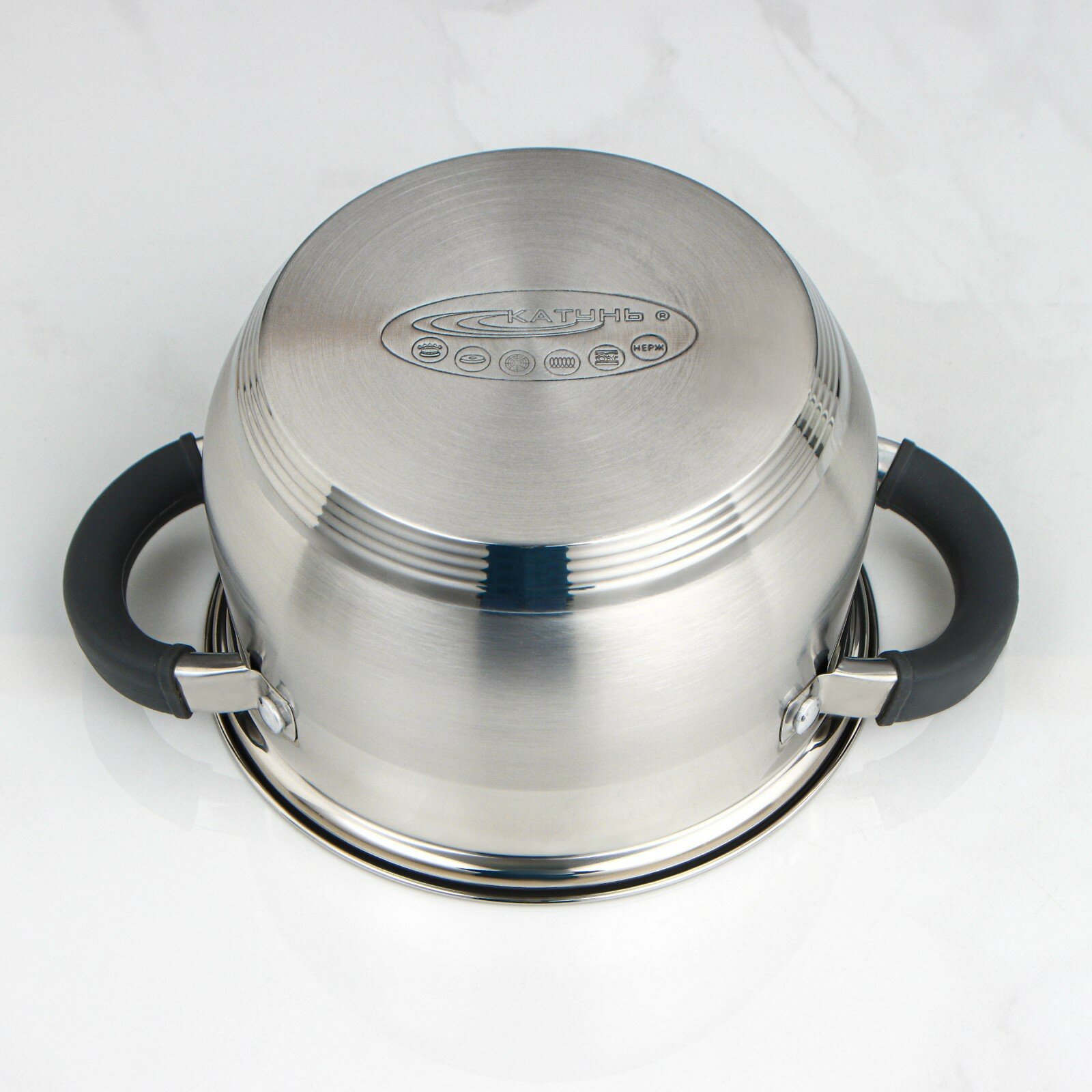 Кастрюля Катунь серии Ирида 1,9 л изготовлена из высококачественной нержавеющей стали. Благодаря прочному трехслойному капсульному дну, равномерно распределяющему тепло и прекрасно сохраняющему температуру, приготовление пищи происходит быстрее. Крышка из термостойкого закаленного стекла снабжена металлическим ободком для прочности и более плотного закрывания, а также пароотводом. Ручки кастрюль покрыты термостойким силиконом. Форма кастрюли цилиндрическая, наружная полировка зеркальная. Подходит для всех типов плит. Возможна чистка в посудомоечной машине. Упакована в цветную подарочную коробку. Преимущества высококачественная нержавеющая сталь, металлические ручки на заклепках, зеркальная полировка поверхности, ручки кастрюли покрыты термостойким силиконом, подходит для газовых, стеклокерамических и электрических плит, включая индукционные Диаметр кастрюли 16 см. Цвет серебристый. Технические характеристики Основные характеристики Товар сертифицирован Да Возможность использования на индукционных плитах Нет Возможность использования на галогеновых и стеклокерамических плитах Есть Возможность использования на газовых плитах Есть Возможность использования на электрических плитах Есть Возможность мытья в посудомоечной машине Есть Объём посуды 1,9 л Диаметр посуды 16 см Цвет Серебристый Тип посуды Кастрюля с крышкой Материал Материал Нержавеющая сталь (толщина стенки 0,4 мм) Термоаккумулируещее многослойное дно Есть (3-шаговое) Материал крышки Стекло Внешнее покрытие Нержавеющая сталь Внутреннее покрытие Нержавеющая сталь Материал ручки Нержавеющая сталь (покрытие силикон чёрный) Дополнительно Клапан для выпуска пара на крышке Есть комплектация Кастрюля 1,9 л, диаметр - 16 см; Крышка из жаропрочного стекла. Производитель: "Катунь", г. Барнаул, Алтайский край.