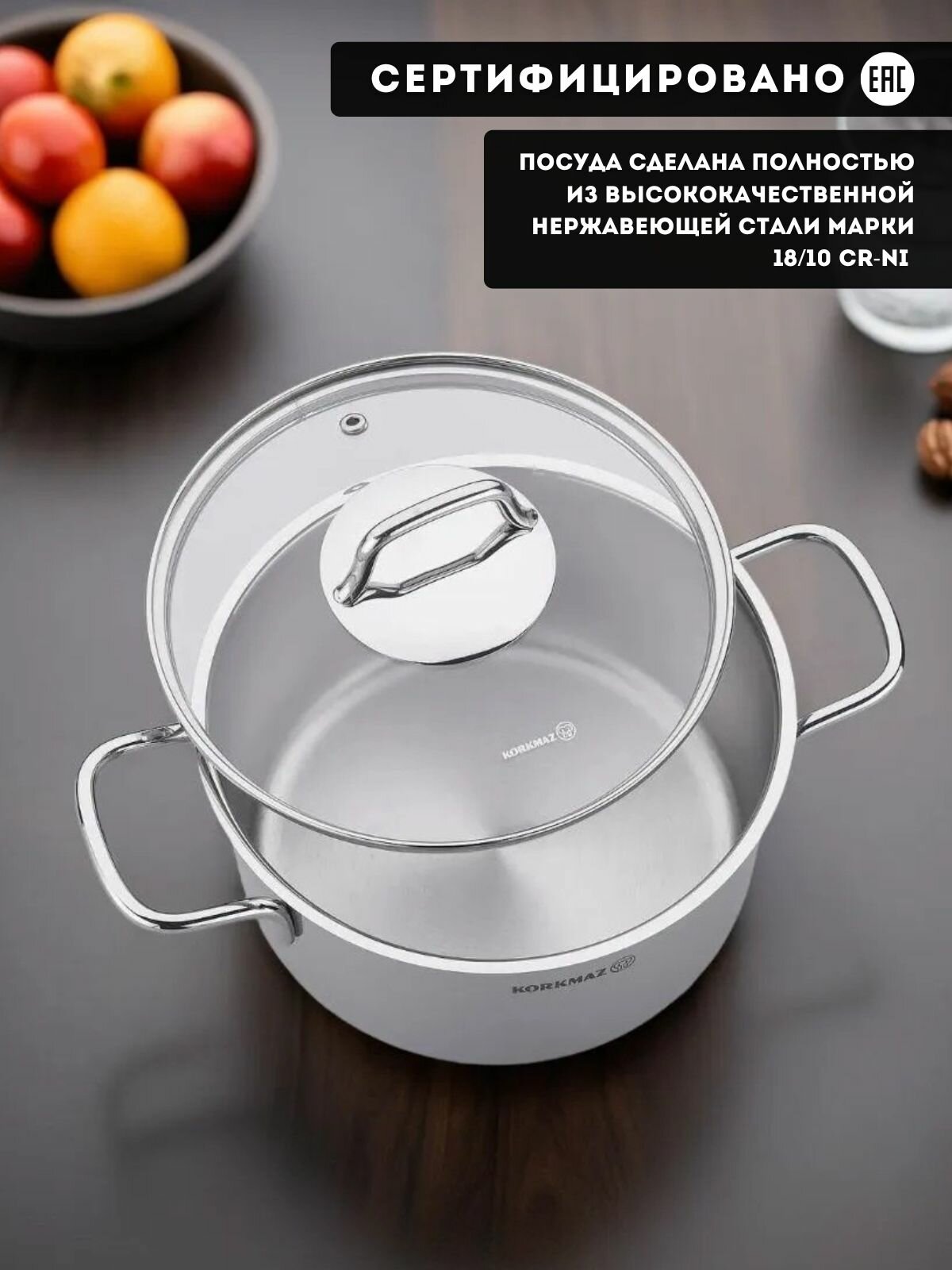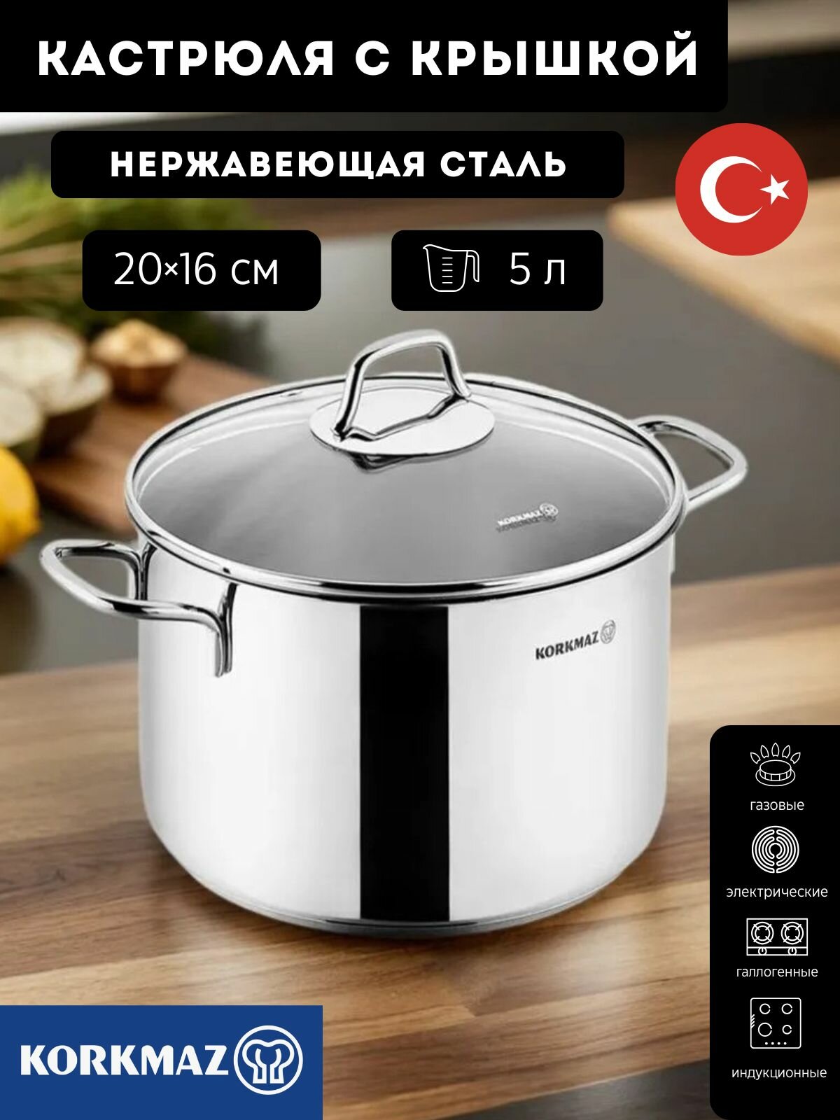 Купить Кастрюля KORKMAZ Perla из нержавеющей стали со стеклянной крышкой 5 л с доставкой по всей России. Кастрюля KORKMAZ Perla из нержавеющей стали со стеклянной крышкой 5 л: сравнение цен, характеристики, фото, актуальное наличие и цены.