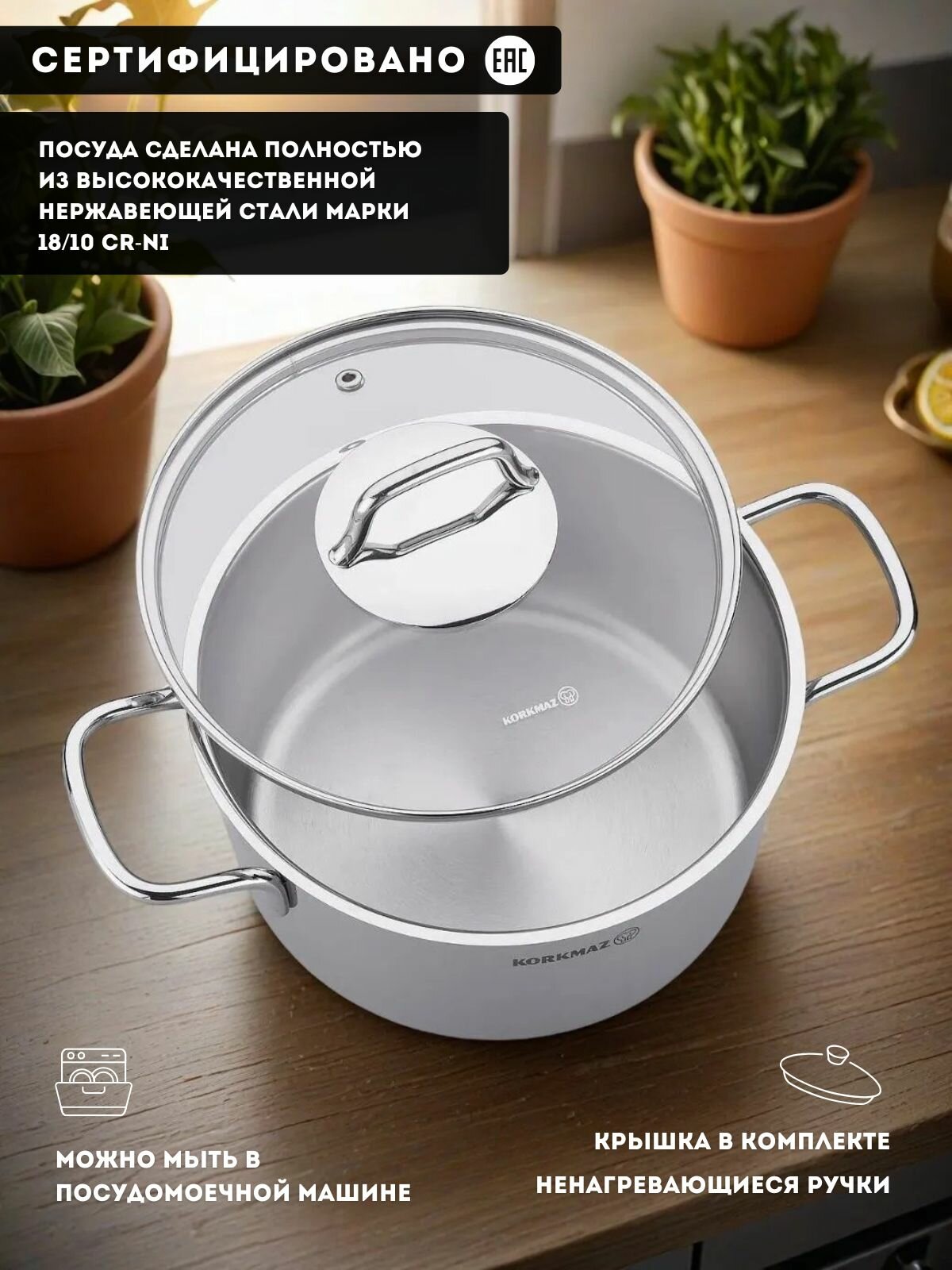 Купить Кастрюля KORKMAZ Perla из нержавеющей стали со стеклянной крышкой 6,8 л с доставкой по всей России. Кастрюля KORKMAZ Perla из нержавеющей стали со стеклянной крышкой 6,8 л: сравнение цен, характеристики, фото, актуальное наличие и цены.