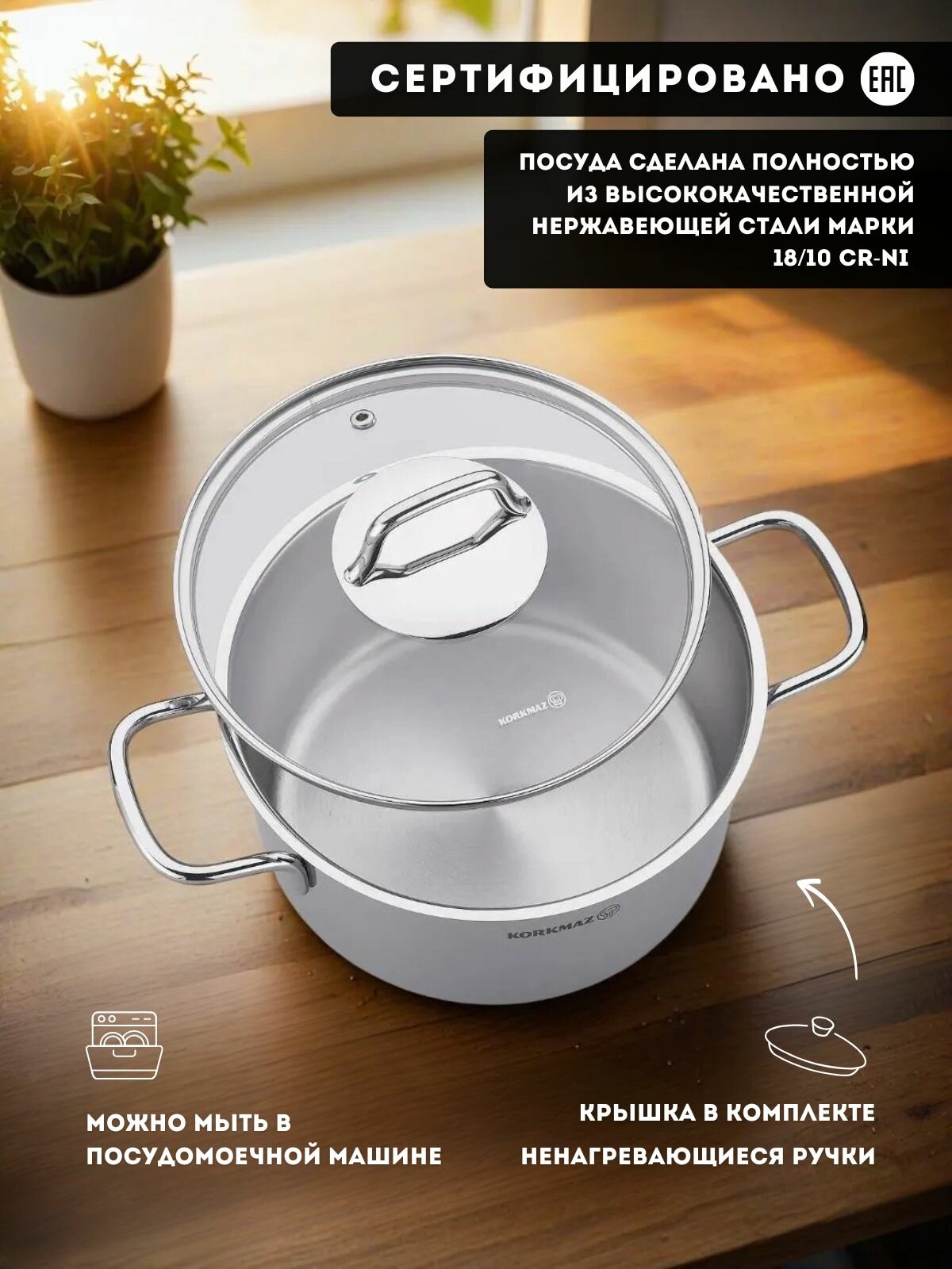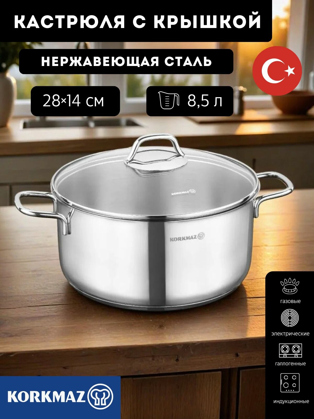Купить Кастрюля KORKMAZ Perla из нержавеющей стали со стеклянной крышкой 8,5 л с доставкой по всей России. Кастрюля KORKMAZ Perla из нержавеющей стали со стеклянной крышкой 8,5 л: сравнение цен, характеристики, фото, актуальное наличие и цены.