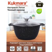 Купить Кастрюля Kukmara, 3 л, антипригарное покрытие «Мраморный», черная с доставкой по всей России.