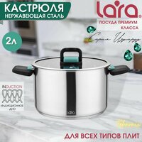 Купить Кастрюля LARA Изумруд 2л, нержавеющая сталь, для всех видов плит, складные ручки с доставкой по всей России.