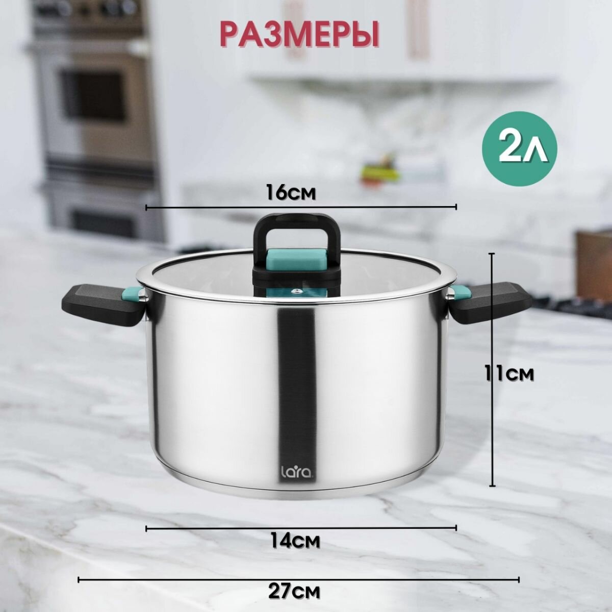 Кастрюля LARA Изумруд 2л, нержавеющая сталь, для всех видов плит, складные ручки: сравнение цен, характеристики, фото, актуальное наличие и цены.