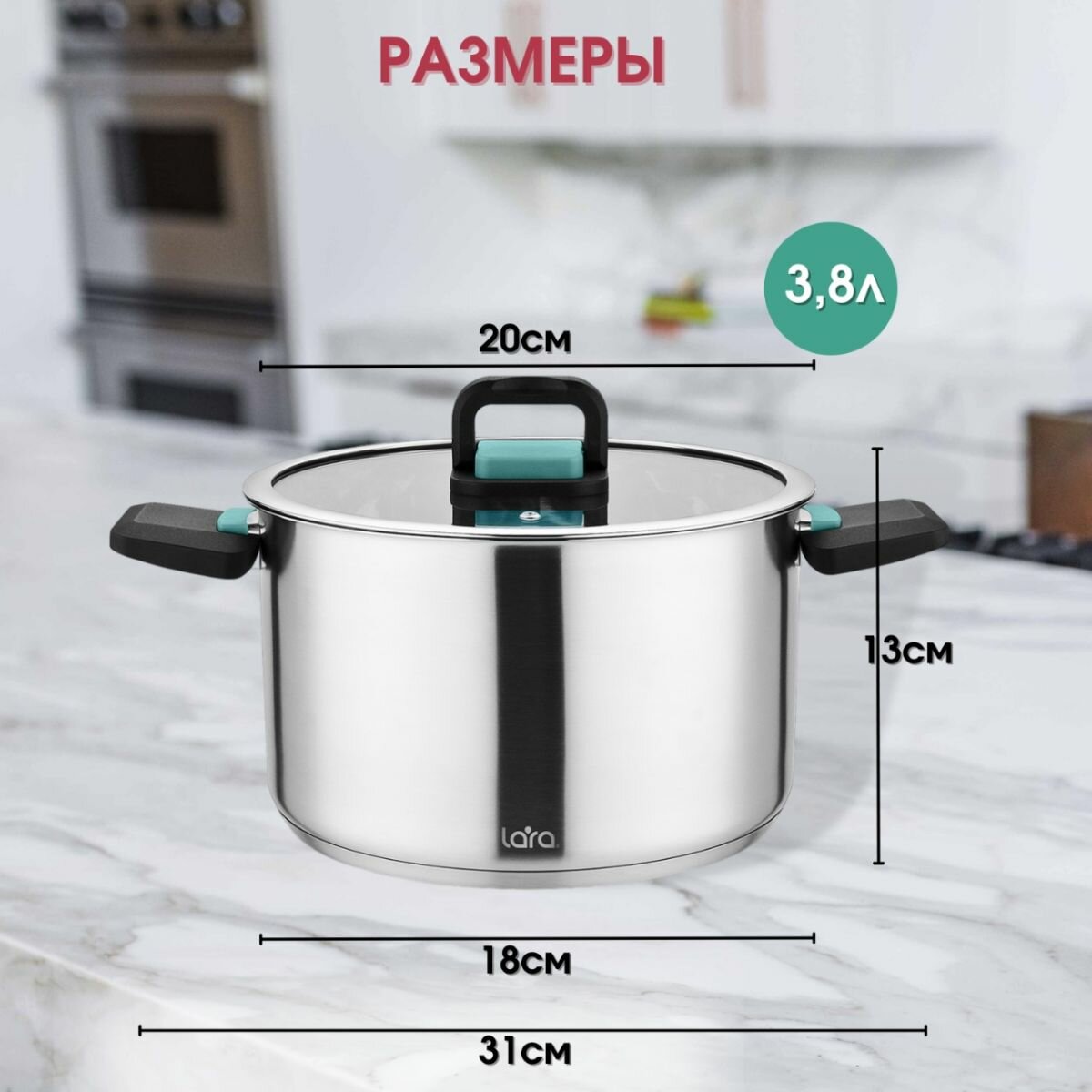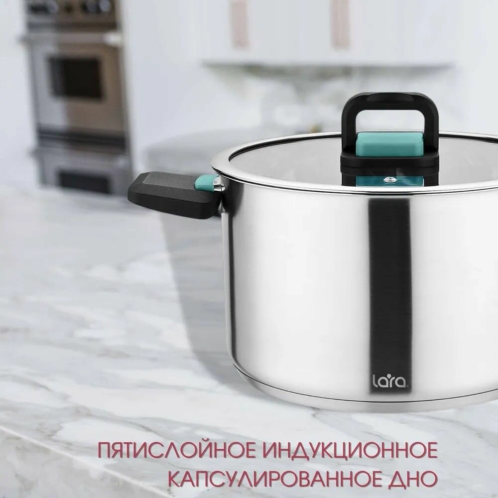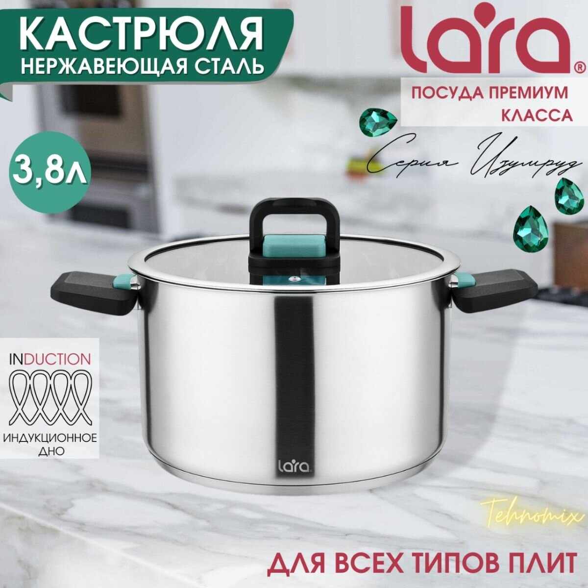 Кастрюля LARA Изумруд 3,8л, нержавеющая сталь, для всех видов плит, складные ручки: сравнение цен, характеристики, фото, актуальное наличие и цены.