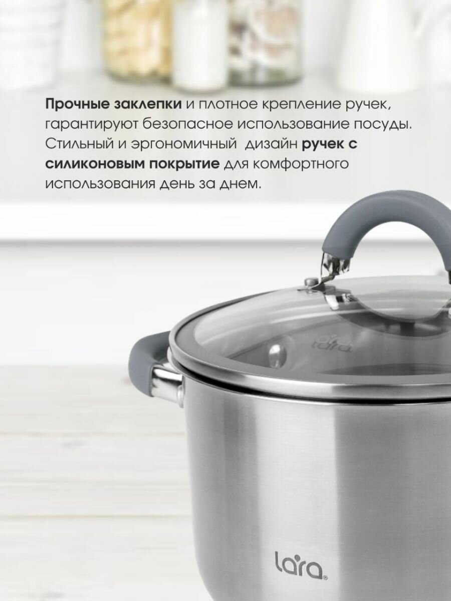 Купить Кастрюля LARA калипсо 2,9 л, индукция, крышка стекло/силикон с доставкой по всей России. Кастрюля LARA калипсо 2,9 л, индукция, крышка стекло/силикон: сравнение цен, характеристики, фото, актуальное наличие и цены.
