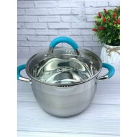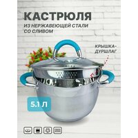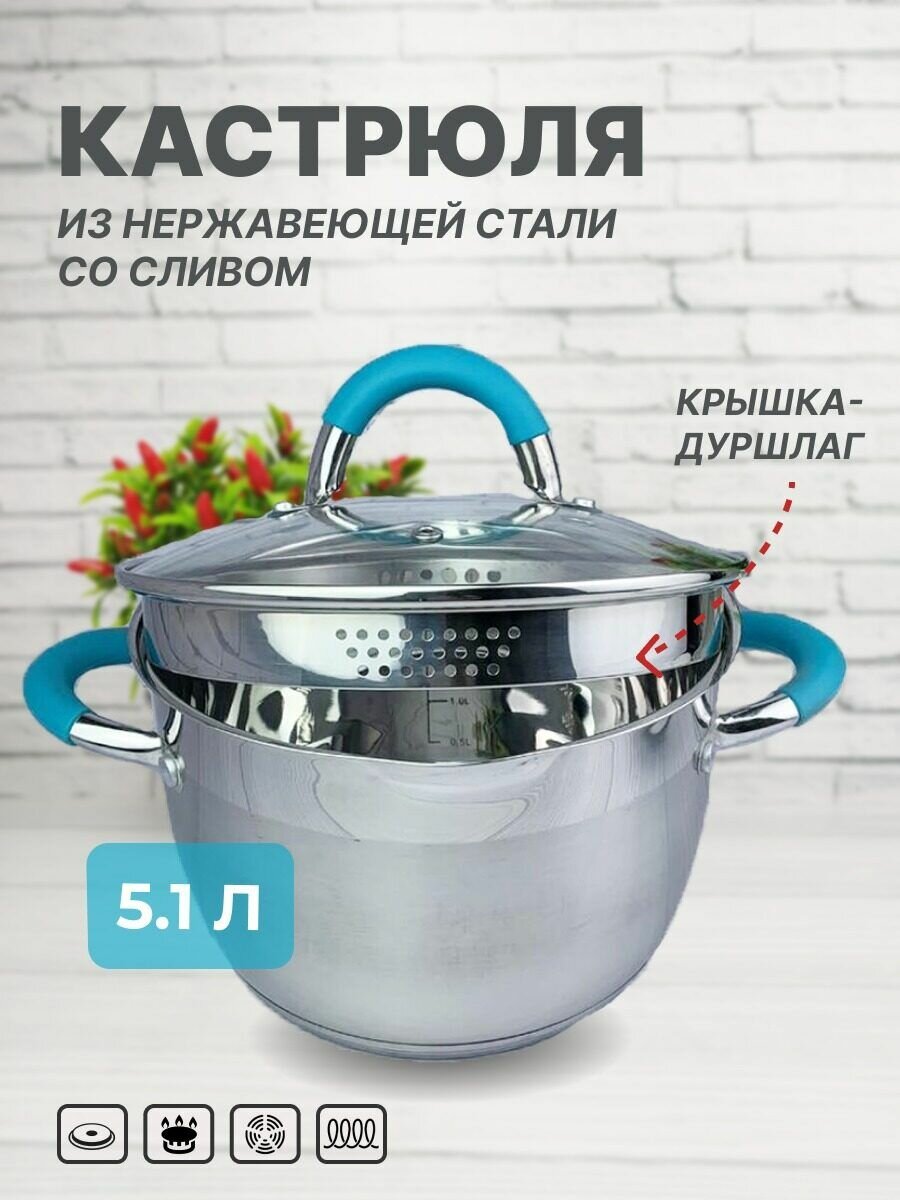 Купить Кастрюля 5,1 л для индукции нержавеющей стали с крышкой-дуршлаг из жаропрочного стекла с доставкой по всей России.