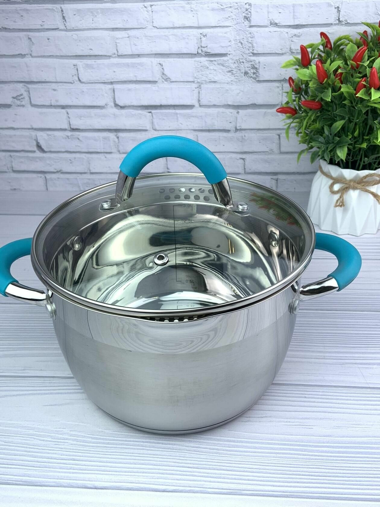 Кастрюля 5,1 л для индукции нержавеющей стали с крышкой-дуршлаг из жаропрочного стекла: сравнение цен, характеристики, фото, актуальное наличие и цены.