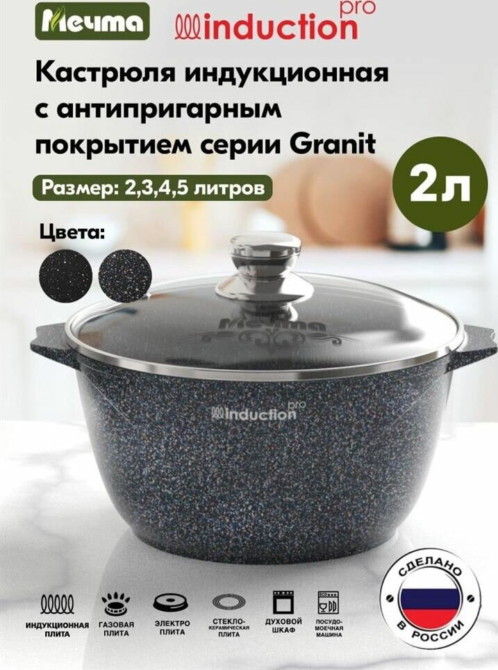 Кастрюля Гранит из литого высококачественного пищевого алюминия «Мечта» станет незаменимым инструментом и надежным помощником на вашей кухне.