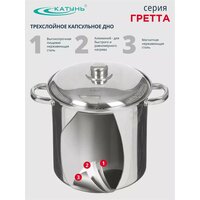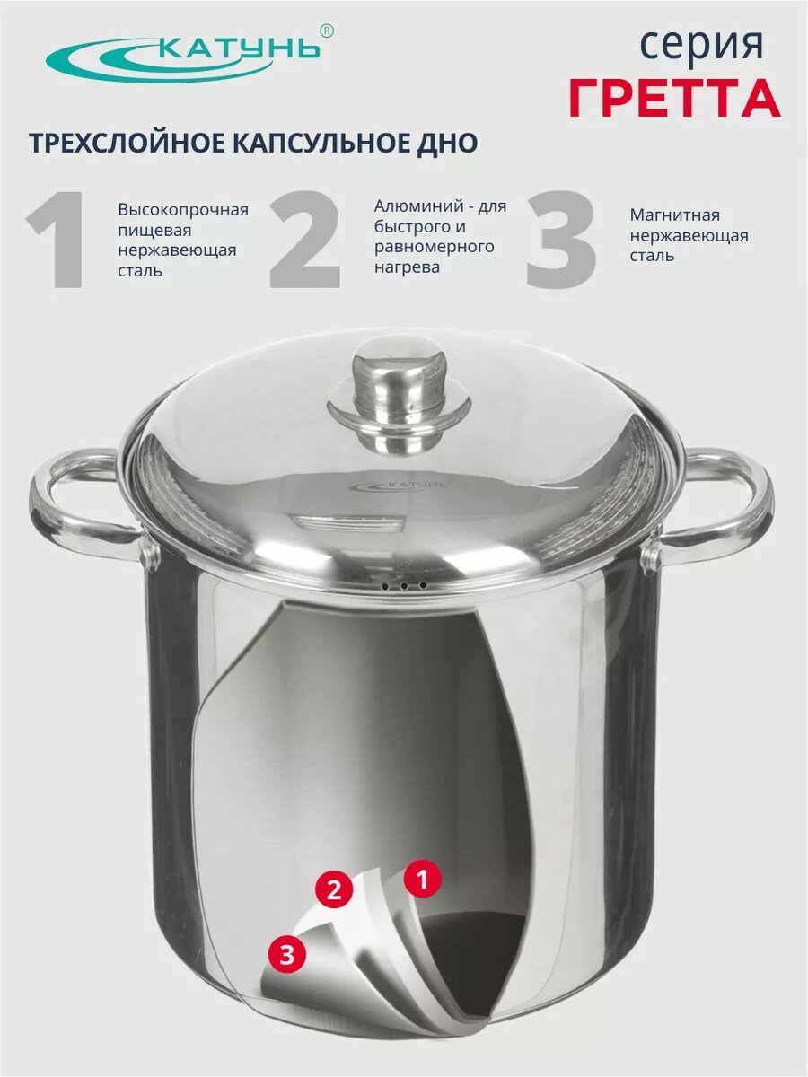 Кастрюля нержавеющая сталь, 11 л, с крышкой, крышка нержавеющая сталь, Катунь, Гретта, KT04-D-110, индукция: сравнение цен, характеристики, фото, актуальное наличие и цены.
