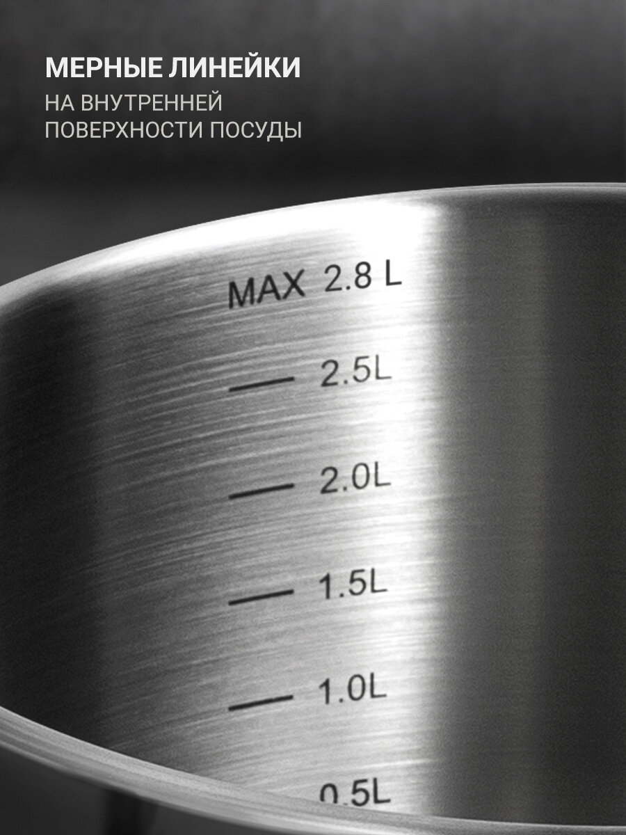 мерная шкала, мытье в посудомоечной машине, с крышкой, термоизолированная ручка, толстое дно