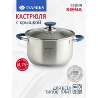 Купить Кастрюля нержавеющая сталь, 4.75 л, с крышкой, крышка стекло, Daniks, Сиена, SD-A93-22, индукция с доставкой по всей России.