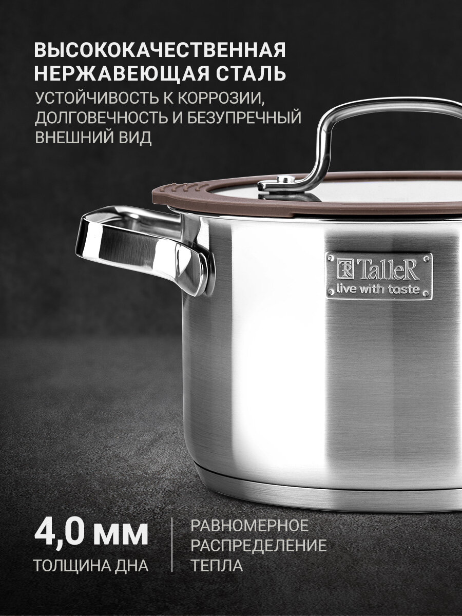 Купить Кастрюля с крышкой TalleR TR-17354 Экспириенс 5.1 л, для всех типов плит с доставкой по всей России. Кастрюля с крышкой TalleR TR-17354 Экспириенс 5.1 л, для всех типов плит: сравнение цен, характеристики, фото, актуальное наличие и цены.