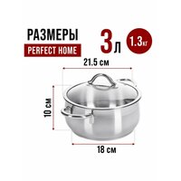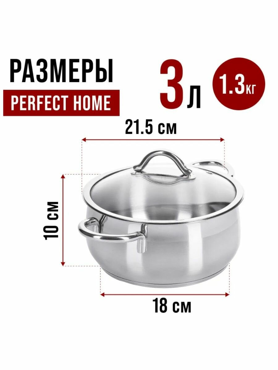 Кастрюля с крышкой HOME PERFECT выполнена из высококачественной нержавеющей стали с многослойным термоаккумулирующим дном, способствующим высокой теплопроводности и равномерному распределению тепла. Нержавеющая сталь обладает высокой устойчивостью к коррозии, не вступает в реакцию с холодными и горячими продуктами и полностью сохраняет их вкусовые качества. Посуда идеальна для приготовления здоровой пищи с минимальным количеством жира, что обеспечивает снижение потери витаминов, минеральных веществ и сохраняет аромат приготовленных блюд. Посуда очень удобна в использовании и элегантна. Крышка выполнена из термостойкого стекла с металлическим ободком и отверстием для выхода пара. Подходит для использования на всех типах плит, включая индукционные. Подходит для мытья в посудомоечной машине. Эта посуда незаменимый инвентарь для кухни, который подходит для приготовления различных блюд. Элегантный дизайн делают эту кастрюлю отличным подарком для мамы, бабушки или жены. Она прекрасно впишется в любой интерьер и поможет создать порядок и удобство на вашей кухне, а так же приготовить вкусный суп, жаркое или компот.