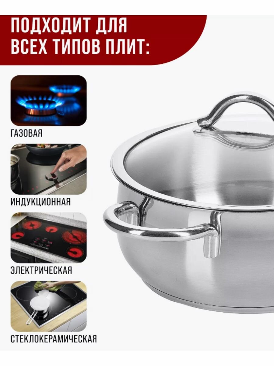 Купить Кастрюля нержавеющая сталь со стеклянной крышкой, 6 л с доставкой по всей России. Кастрюля нержавеющая сталь со стеклянной крышкой, 6 л: сравнение цен, характеристики, фото, актуальное наличие и цены.