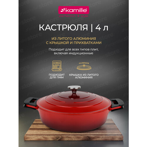 Еще одним преимуществом кастрюль Kamille из литого алюминия является тот факт, что рукояти кастрюль отливаются вместе с корпусом. Это увеличивает степень прочности их соединения, а благодаря крышке изготовленной также из литого алюминия, посуду можно использовать в духовых шкафах, что позволит вам значительно расширить свои кулинарные возможности.