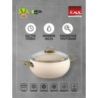 Кастрюля 3,5 л с антипригарным покрытием и стеклянной крышкой. Внутреннее многослойное антипригарное покрытие усилено гранитными частицами для повышения прочности и срока службы кастрюли. Уплотненное дно 5 мм предотвращает деформацию, обеспечивает быстрый, равномерный нагрев. Не содержит PFOA, APFO, C8. Экологически безопасна. Высококачественное антипригарное покрытие позволяет готовить без масла или с минимальным его добавлением. Подходит для всех типов плит, кроме индукционных. Изготовлена из алюминия, неприхотлива в уходе. Устойчива к высоким температурам, инертна к химическому воздействию. Производство - Турция.