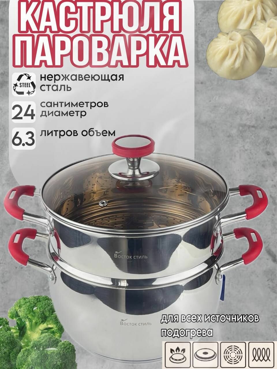 Купить Кастрюля-пароварка 6.3 л нержавеющая сталь, диаметр 24 см для всех плит с доставкой по всей России. Кастрюля-пароварка 6.3 л нержавеющая сталь, диаметр 24 см для всех плит: сравнение цен, характеристики, фото, актуальное наличие и цены.