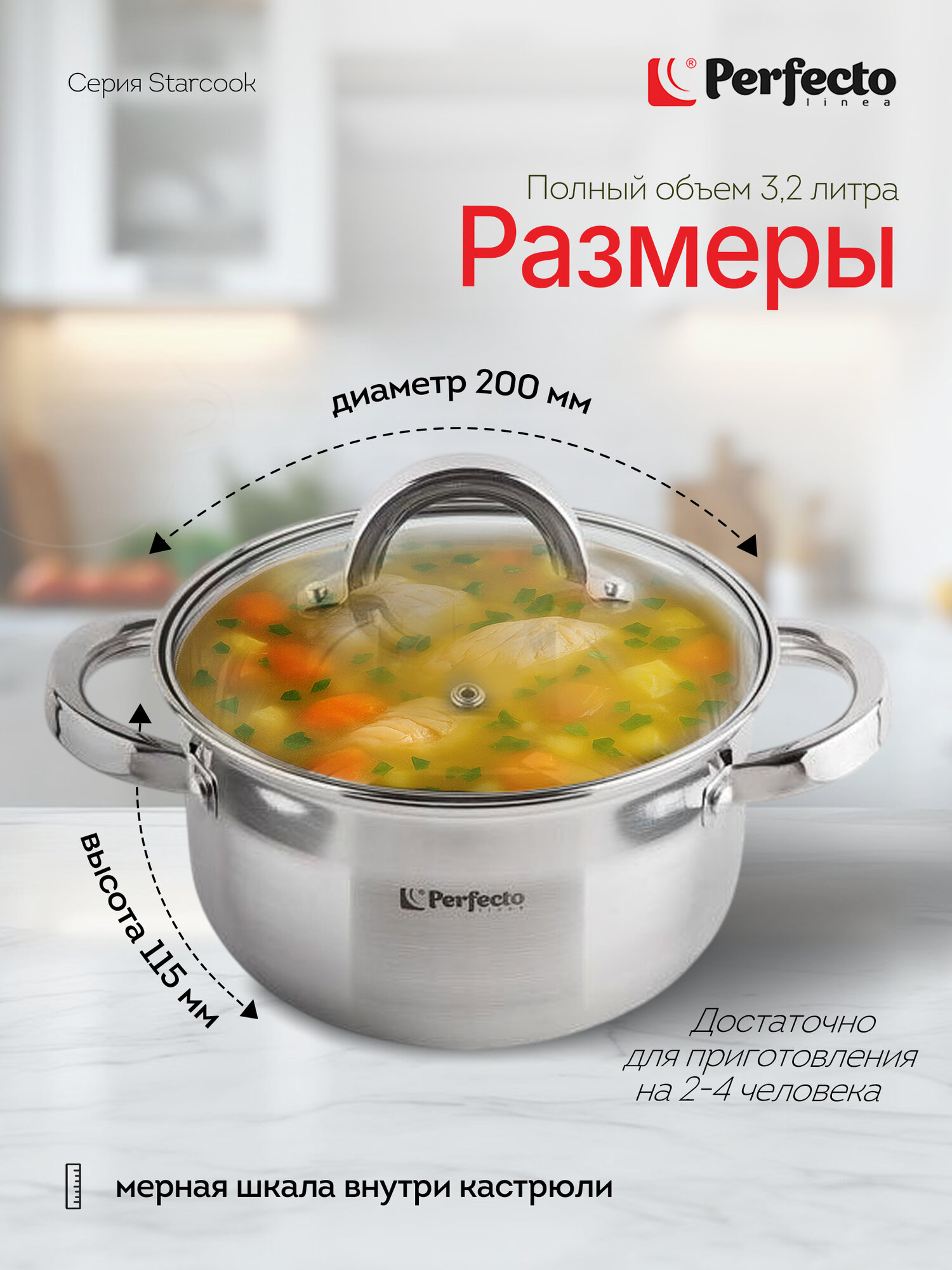 Купить Кастрюля PERFECTO LINEA Starcook из нержавеющей стали 3,2 л 50-520115 с доставкой по всей России. Кастрюля PERFECTO LINEA Starcook из нержавеющей стали 3,2 л 50-520115: сравнение цен, характеристики, фото, актуальное наличие и цены.