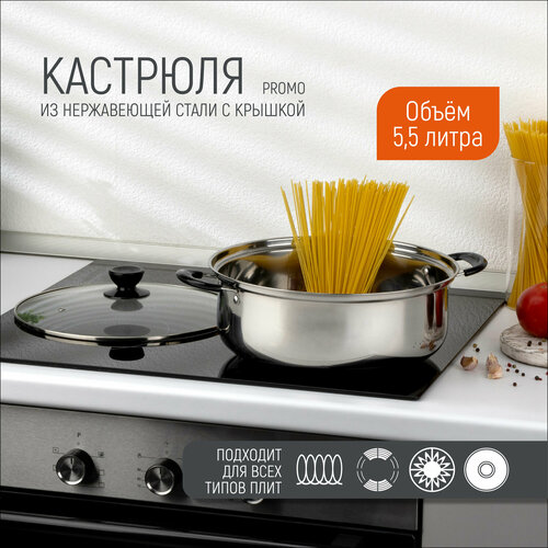 Купить Кастрюля Promo, объем 5,5 л, из нержавеющей стали с крышкой из жаропрочного стекла с доставкой по всей России. Кастрюля Promo, объем 5,5 л, из нержавеющей стали с крышкой из жаропрочного стекла: сравнение цен, характеристики, фото, актуальное наличие и цены.