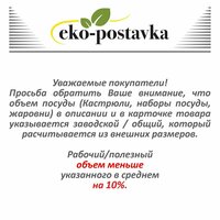 | Дополнительная информация | Просьба обратить внимание, что на коробке и в описании указан заводской(общий) объем кастрюли, который отличается от рабочего(полезного) на +0,5 литров в зависимости от литража кастрюль. Просим это учитывать при покупке любых кастрюль и посуды для кухни. |