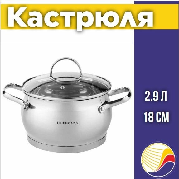 Для всех типов плит, в т. ч. индукционных; Материал крышки: термостойкое стекло с паровыпуском; Материал корпуса: нержавеющая сталь; Материал ручек: нержавеющая сталь; Сталь 0,6 мм; Объем: 2.9 л; Диаметр: 18 см.