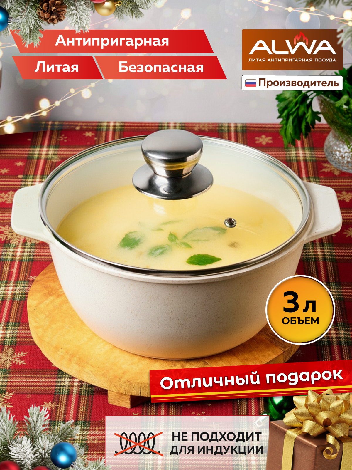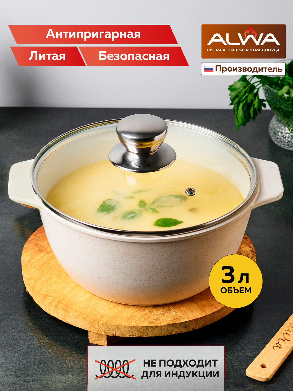 Купить Кастрюля с крышкой ALWA 3 литра антипригарное покрытие, литая, цвет белый молочный с доставкой по всей России. Кастрюля с крышкой ALWA 3 литра антипригарное покрытие, литая, цвет белый молочный: сравнение цен, характеристики, фото, актуальное наличие и цены.