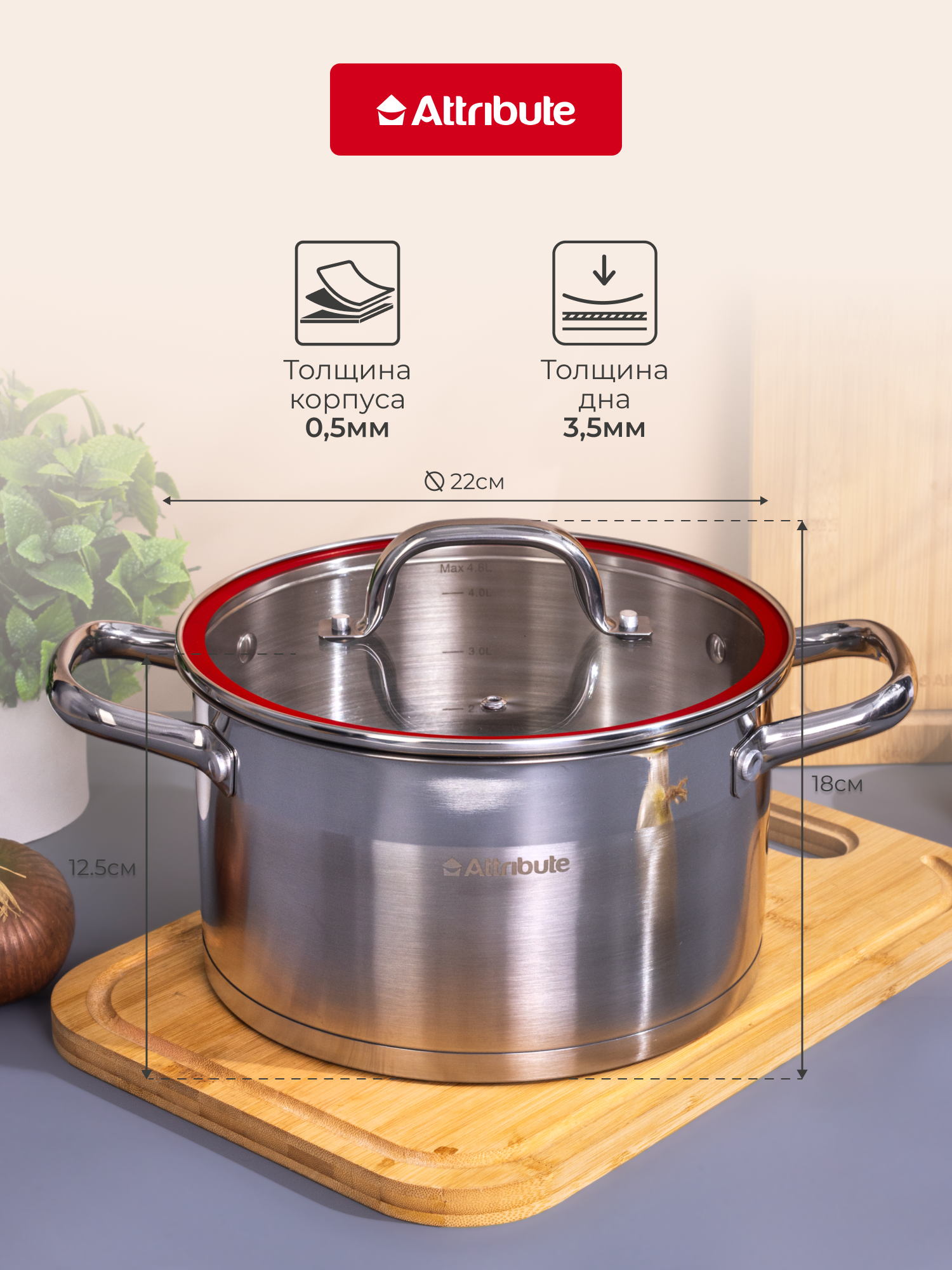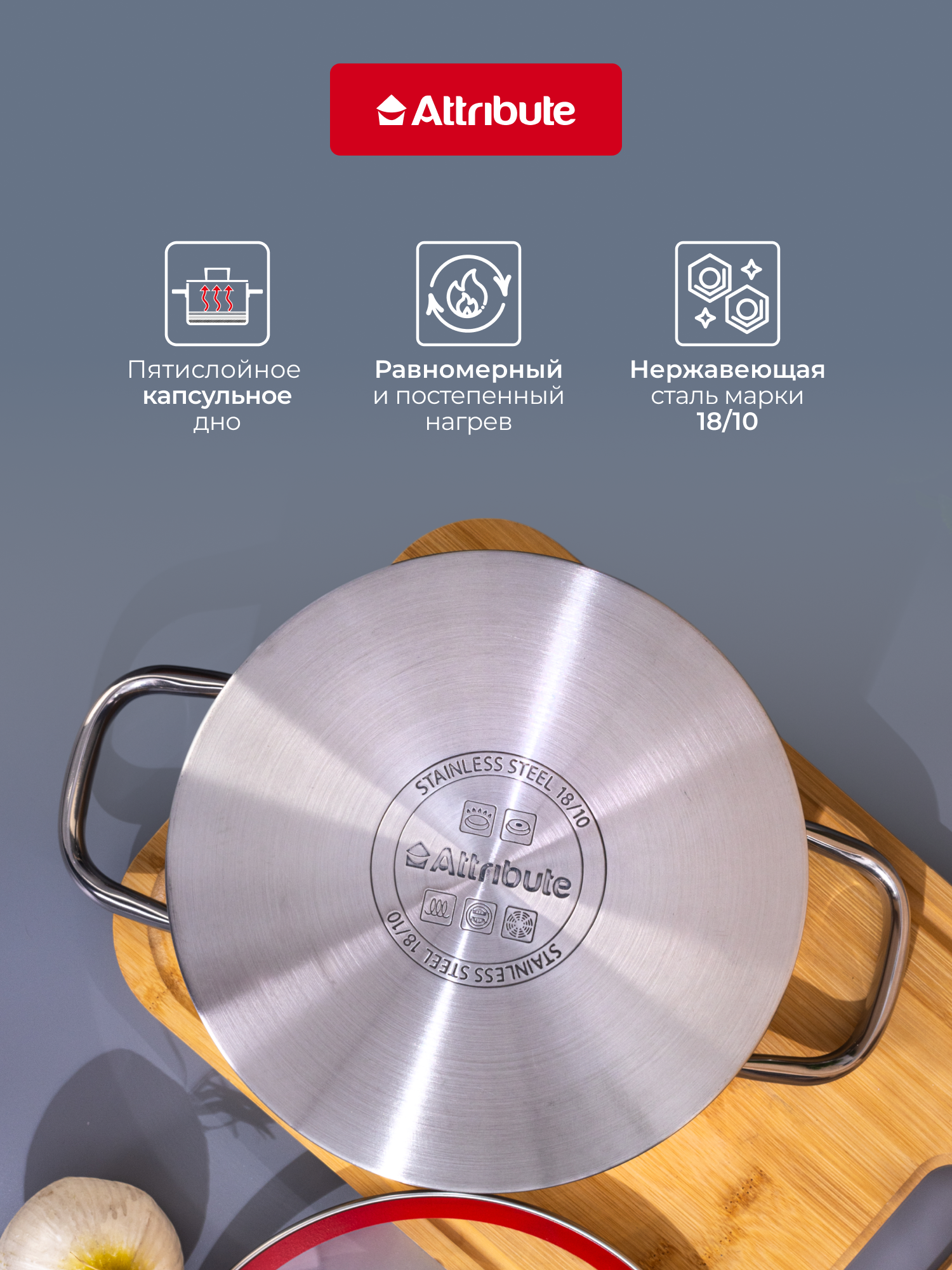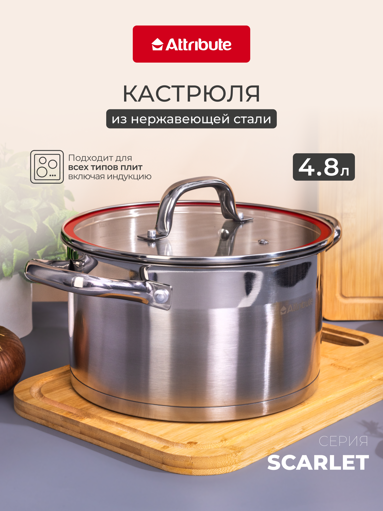 Купить Кастрюля с крышкой Attribute Scarlet, на 4,8 литра, из нержавеющей стали с доставкой по всей России. Кастрюля с крышкой Attribute Scarlet, на 4,8 литра, из нержавеющей стали: сравнение цен, характеристики, фото, актуальное наличие и цены.