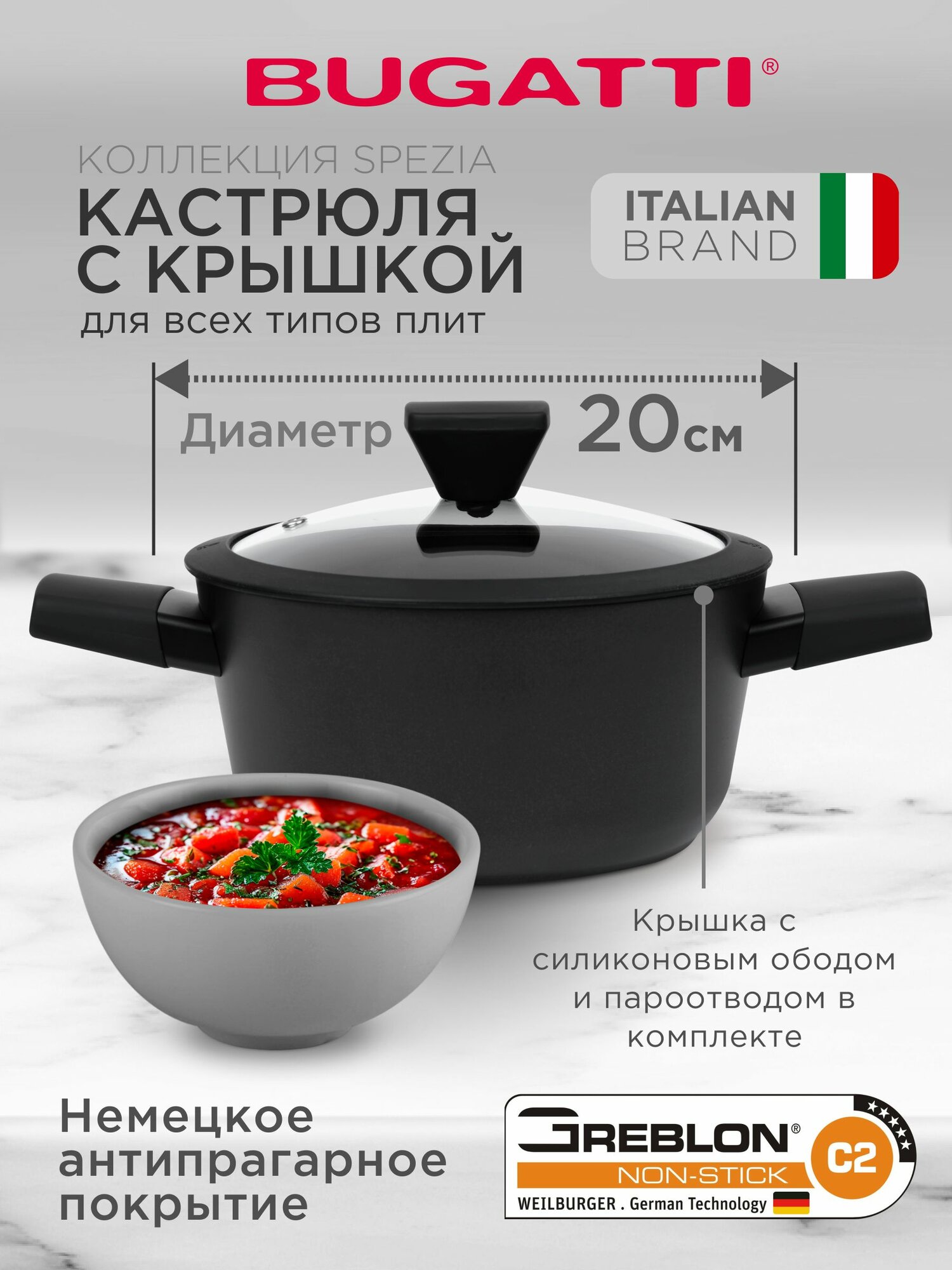 Купить Кастрюля с крышкой Bugatti 2,5л для индукционной плиты, кастрюля с антипригарным покрытием, 20 см с доставкой по всей России. Кастрюля с крышкой Bugatti 2,5л для индукционной плиты, кастрюля с антипригарным покрытием, 20 см: сравнение цен, характеристики, фото, актуальное наличие и цены.