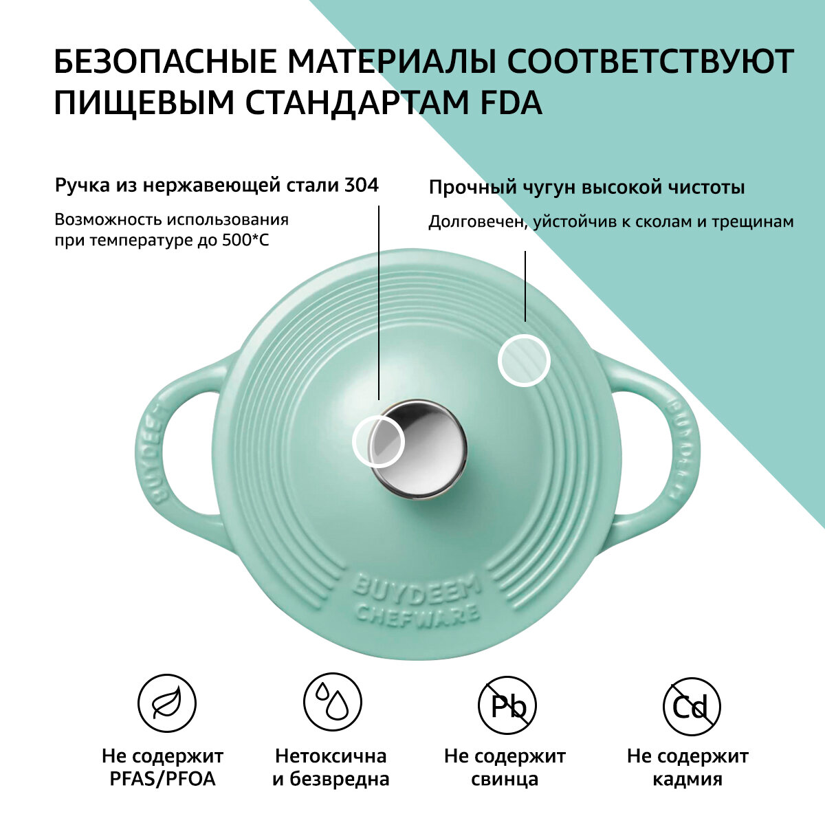 Эмалированная чугунная кастрюля BUYDEEM CP541 вместительностью 1,8 литра — идеальный выбор для любой хозяйки!
