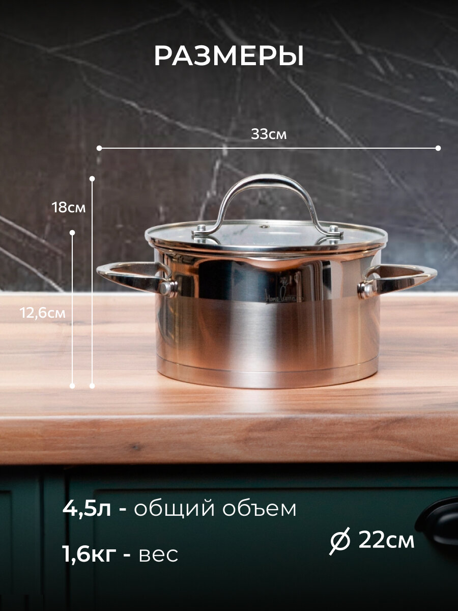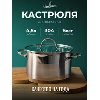 Купить Кастрюля с крышкой из нержавеющей стали 4,5 л для индукционной плиты с доставкой по всей России. Кастрюля с крышкой из нержавеющей стали 4,5 л для индукционной плиты: сравнение цен, характеристики, фото, актуальное наличие и цены.