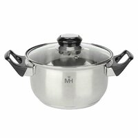 Нержавеющая сталь 18/10. Капсульное термоаккумулирующее дно. Мерная шкала для измерения объема. Толщина стенок 0,5 мм. Толщина дна 3 мм. Крышка из закаленного стекла. Ручки из бакелита. Можно мыть в посудомоечной машине. Подходит для электрических, газовых и стеклокерамических плит. БЕЗ ИНДИВИДУАЛЬНОЙ УПАКОВКИ!!!