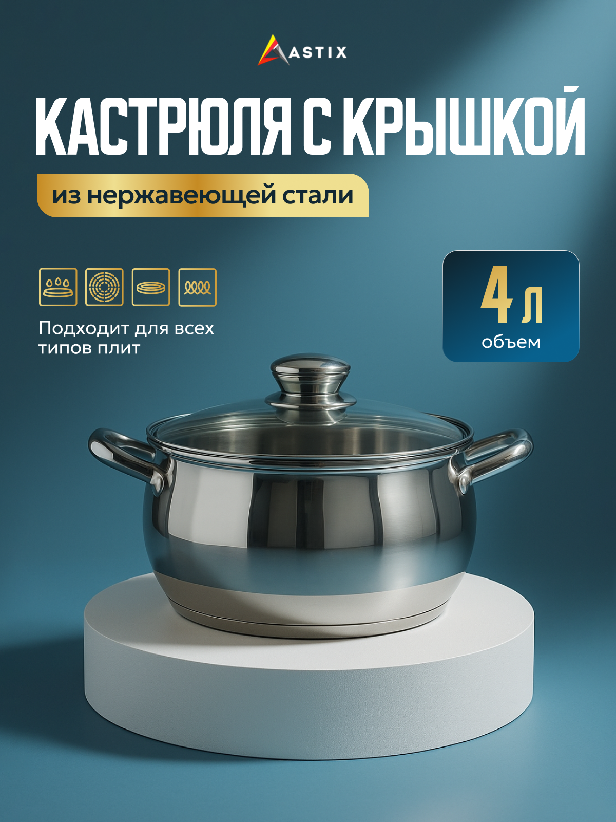 Кастрюля с крышкой из нержавеющей стали, объём 4 литра, для всех видов плит: сравнение цен, характеристики, фото, актуальное наличие и цены.