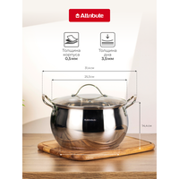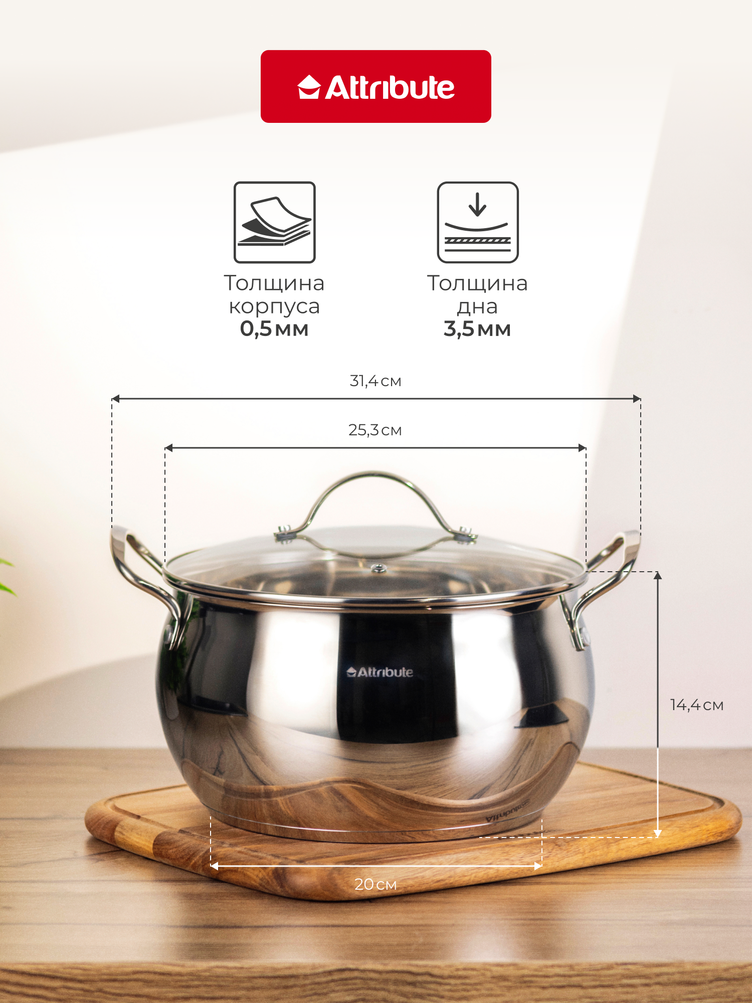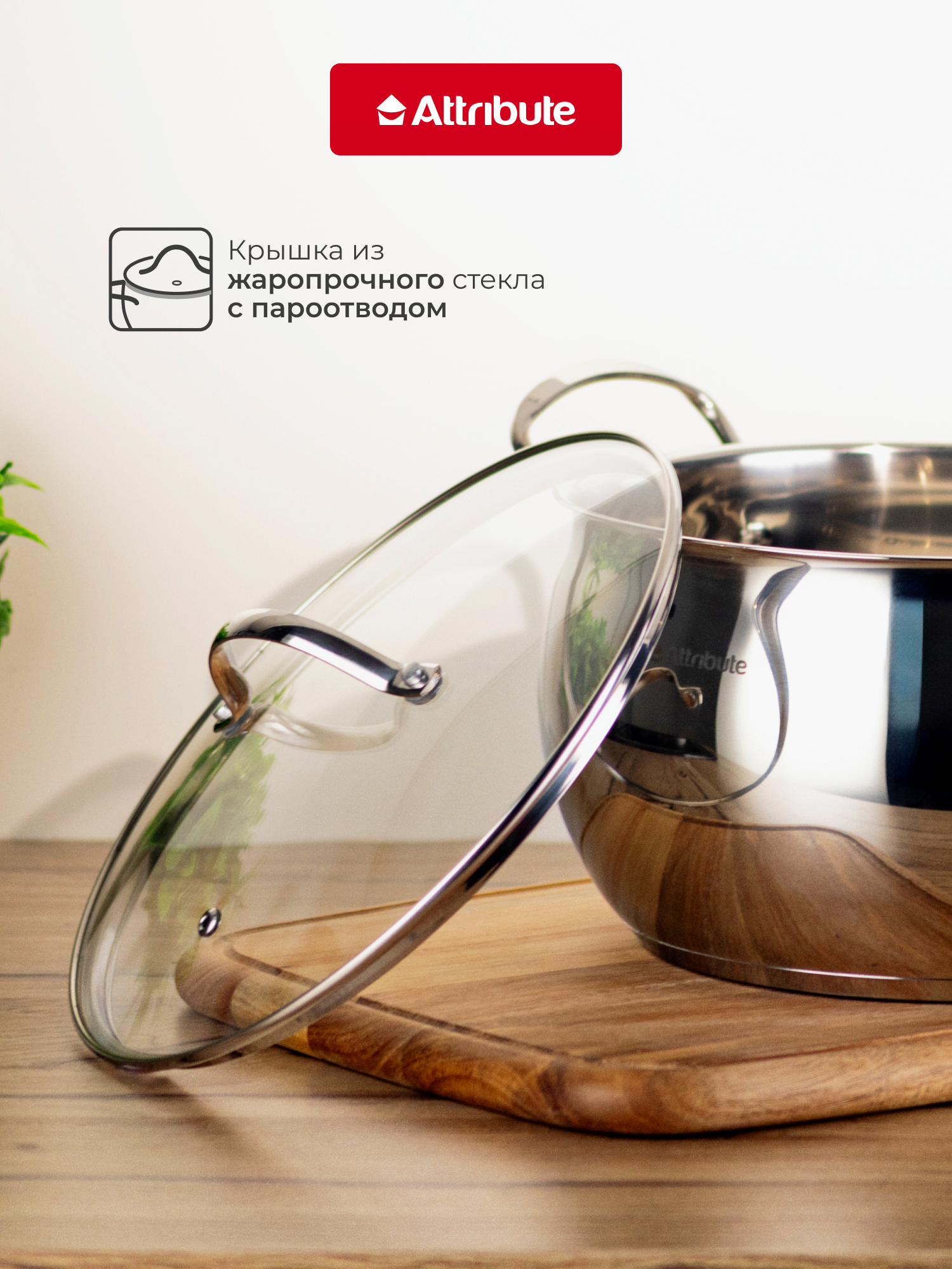 Посуда изготовлена из высококачественной нержавеющей стали, обладающей высокими антикоррозионными характеристиками. Пятислойное капсульное дно обеспечивает быстрый и равномерный нагрев посуды, позволяет избежать точек перегрева, что препятствует подгоранию пищи в процессе приготовления. Крышка изготовлена из жаропрочного стекла, которое отличается повышенной термостойкость и устойчивостью к перепаду температур. Посуда подходит для любых типов плит, включая индукционные, и для использования в духовом шкафу.