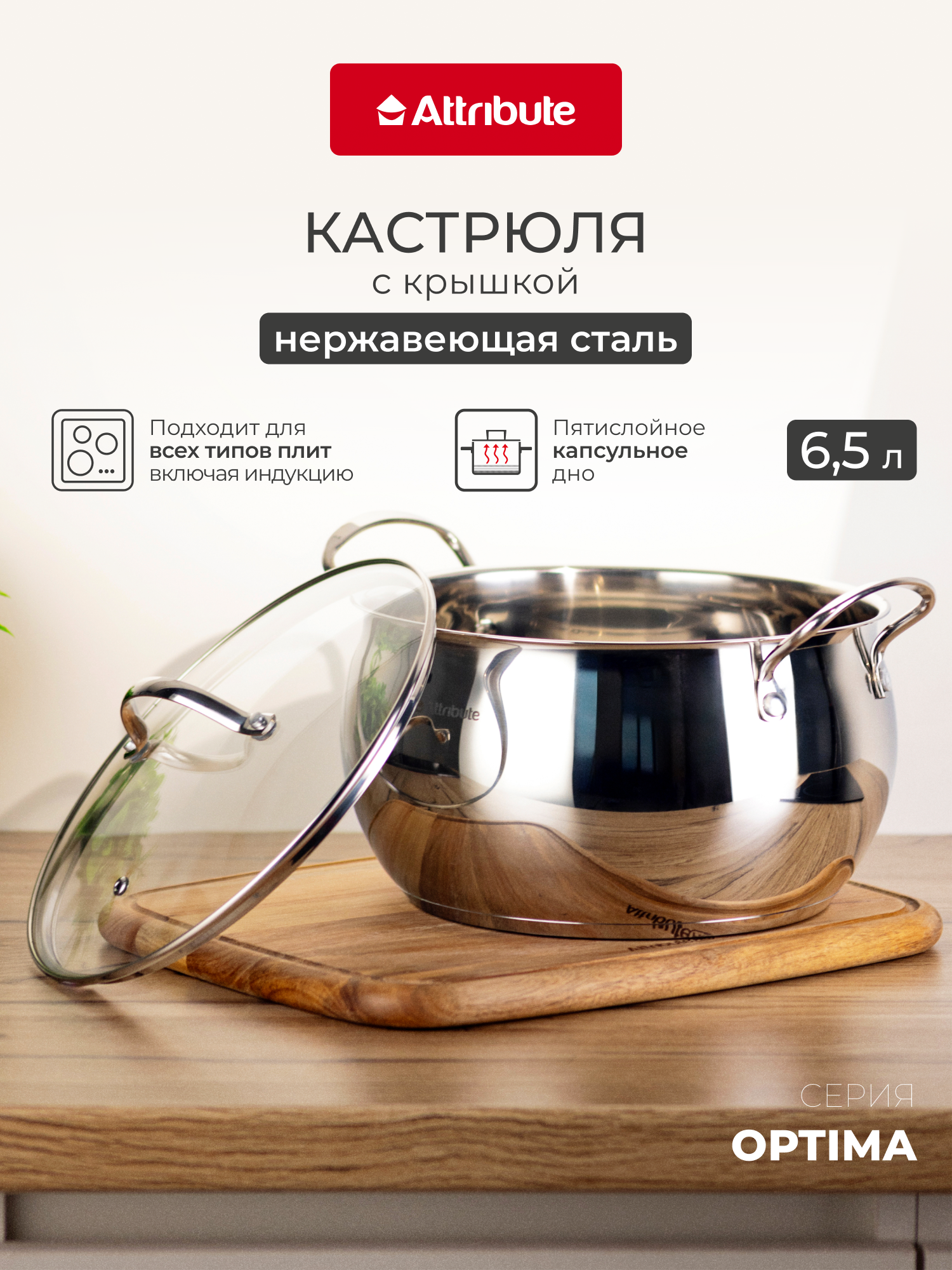 Купить Кастрюля из нержавеющей стали со стеклянной крышкой OPTIMA 6.5л с доставкой по всей России. Кастрюля из нержавеющей стали со стеклянной крышкой OPTIMA 6.5л: сравнение цен, характеристики, фото, актуальное наличие и цены.